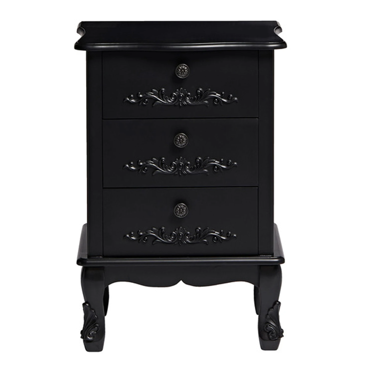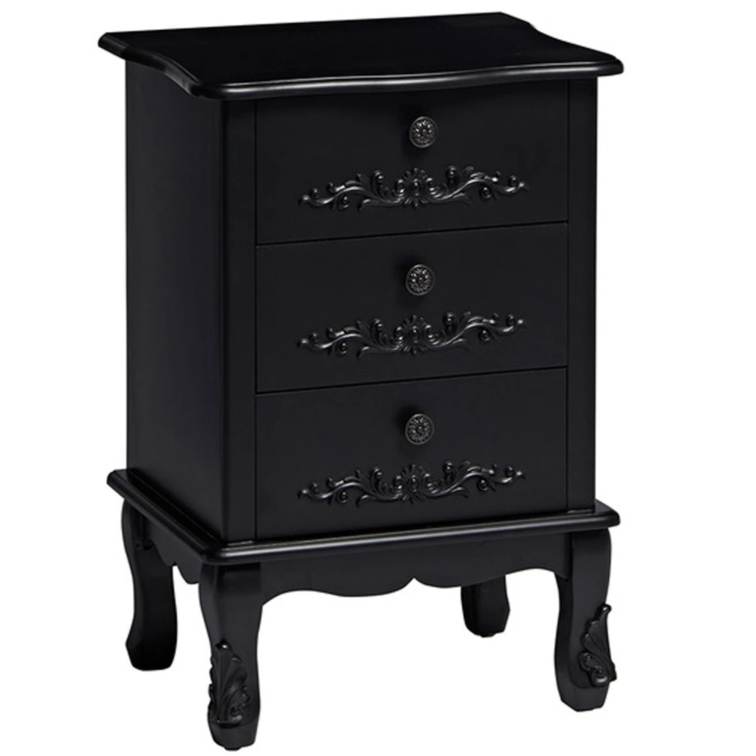 Complete your beautiful Antique French Styled bedroom with this beautiful 3 drawer bedside table, coming from the wonderful Antionette collection. This white chest of drawers is sure to brighten up your home instantly and make it a lot more beautiful. It is the perfect addition to any bedroom in which is looking for some style along with glamour.Â