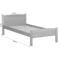 Expertly hand carved from natural mahogany comes this delightful antique French style bed. Finished in an antique white and featuring distinguished ornate detailing with a decorated light gray fabric buttoned headboard and footboard, this bed is ideal to add a touch of elegance and shabby chic style in your bedroom today.