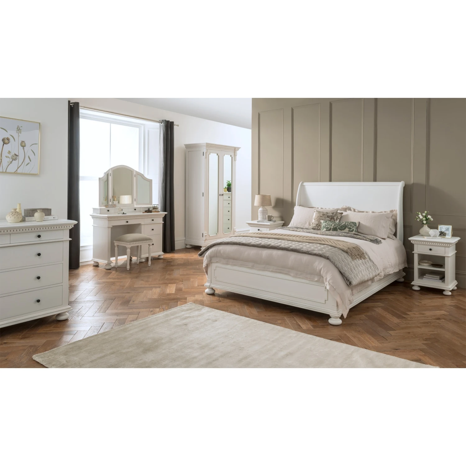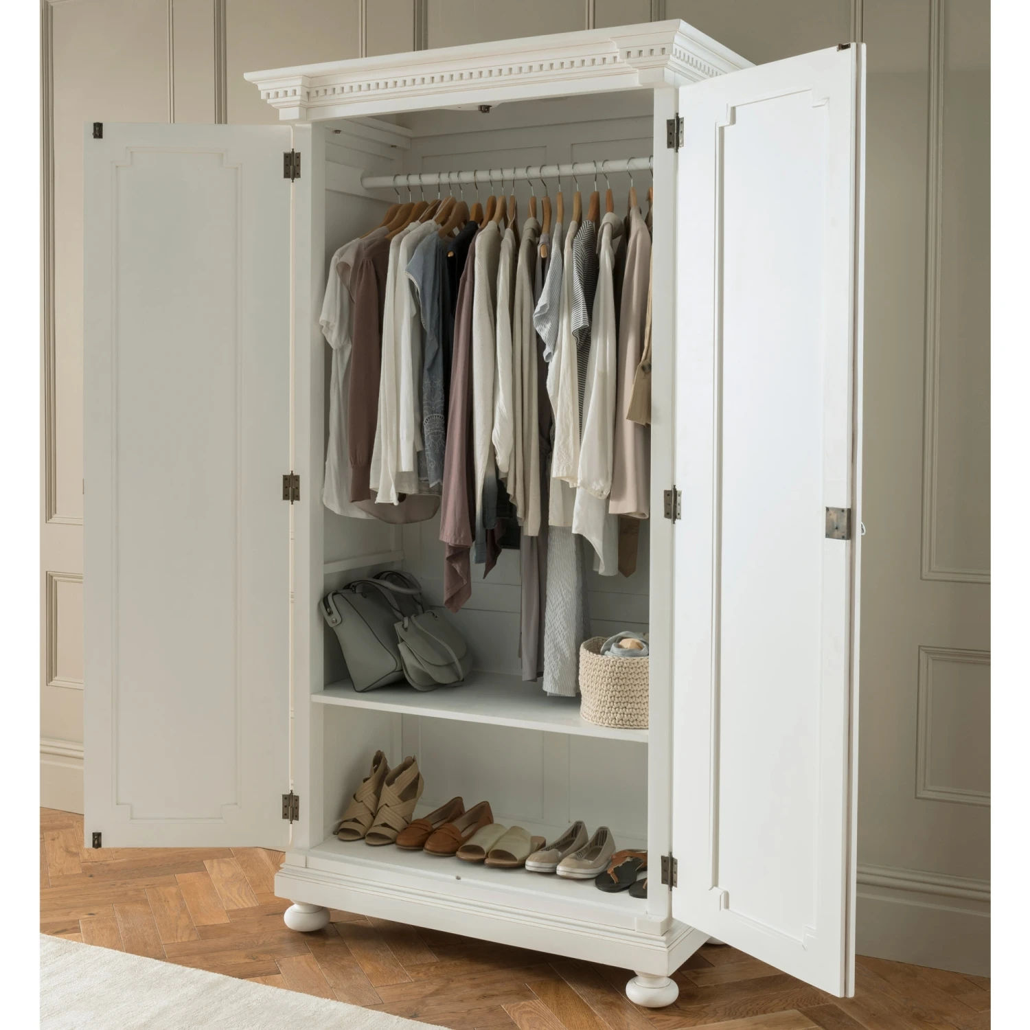 A fantastic new addition to our collection of French style and shabby chic furniture comes this exquisite antique French style wardrobe from our beautiful Bakersfield white collection. Hand-carved and carefully built by experts, this delightful wardrobe finished in white and featuring 2 practical mirrored doors will look wonderful in a variety of settings and sure to astound across generations