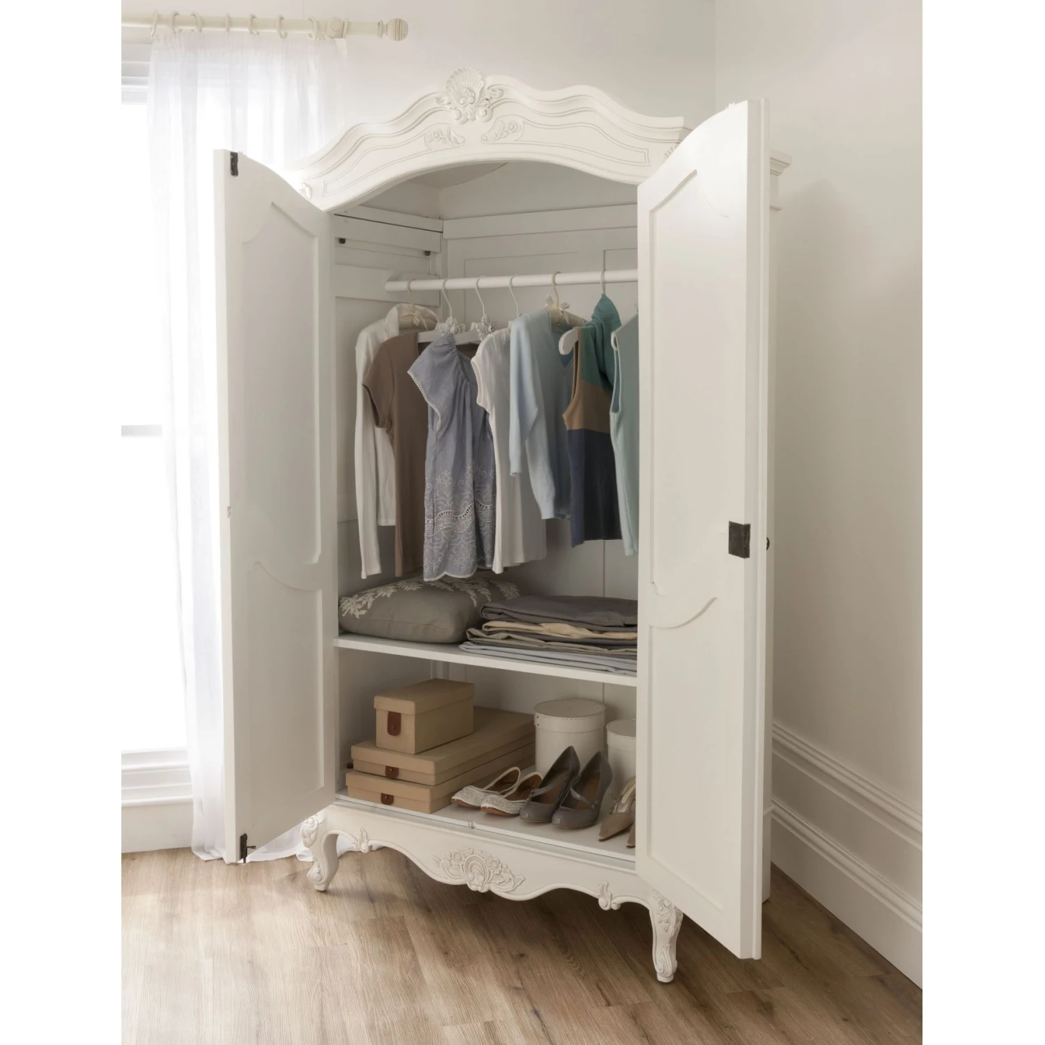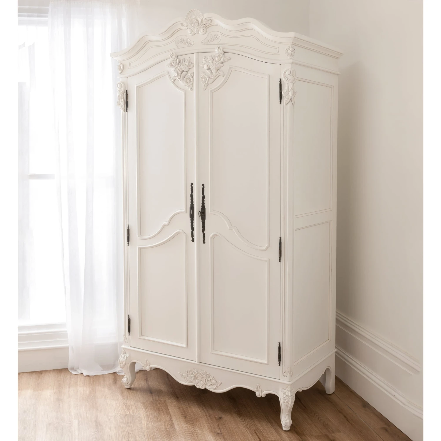 Translated from the Portuguese phrase, meaning irregular pearl, Baroque and its translation perfectly describes the artistic creations occurring in the 17th and 18th Century in France. As you can see here with this magnificent Wardrobe irregular pearl perfectly describes the beautiful detailing’s, the flowing symmetrical carvings. Made from hand carved from solid mahogany, this Wardrobe is strong and exuberant as many Baroque pieces are, reflecting the strength in leadership of King Louis XIV at the time. This Wardrobe is grand and extremely impressive in person and alongside the other pieces in the matching range would make for a stunning bedroom set.