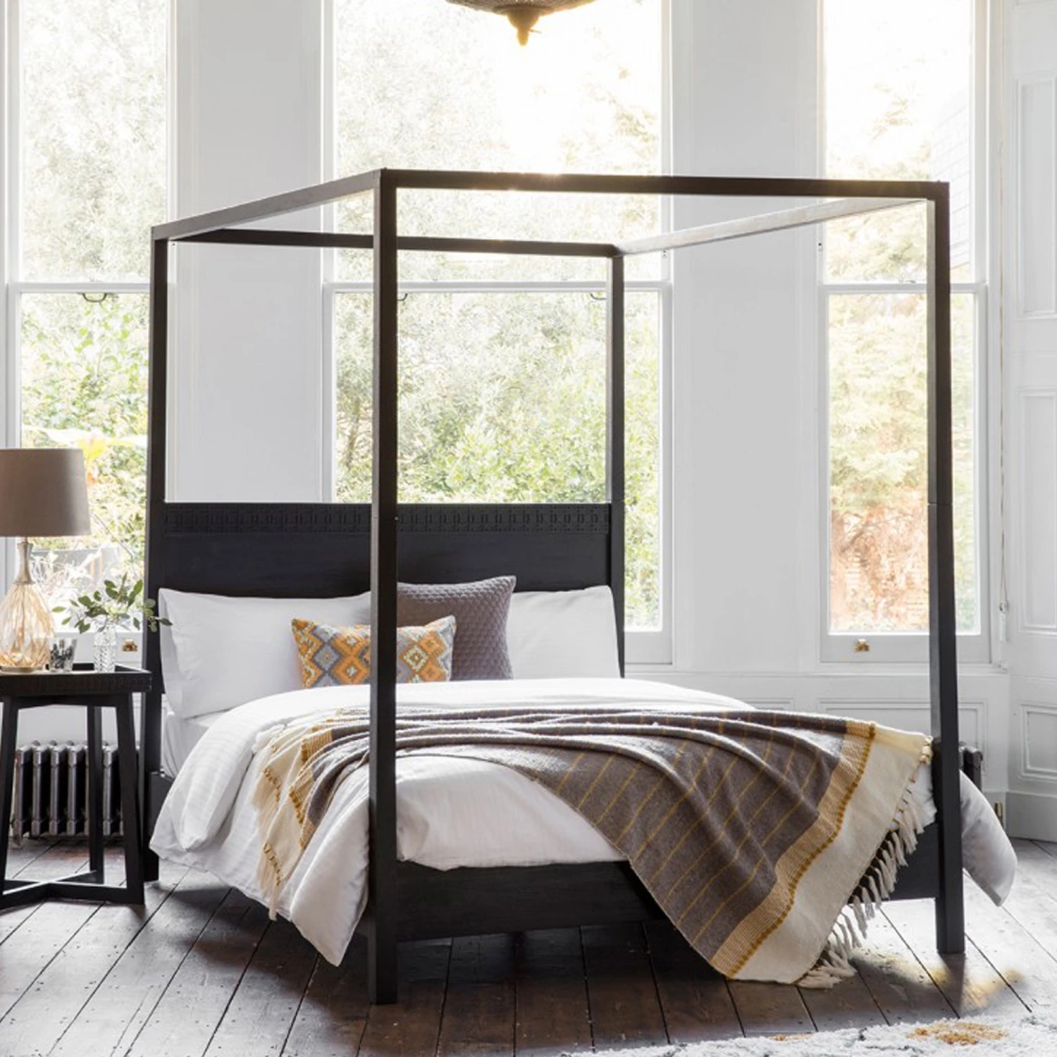 Give your home that gorgeous contemporary and modern finish to it by just adding in this beautiful bed. Coming with a gorgeous design of 4 poster and giving you that urban feel around your bedroom you have been wanting. This bed is perfect to be a astonishing and beautiful statement piece in any room.Â