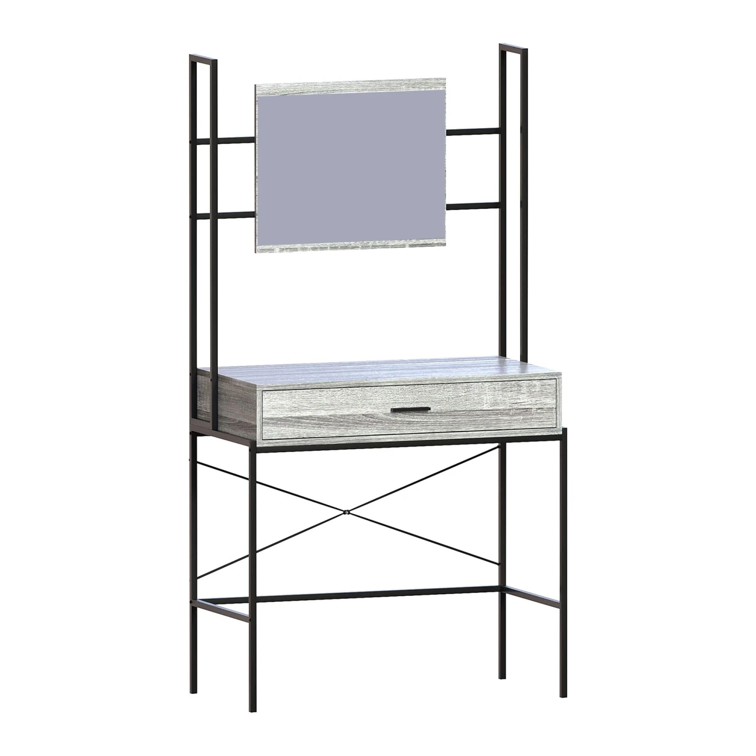 Give your bedroom a new look when you introduce the Brooklyn Grey 1 Drawer Dressing Table, bringing a unique industrial style to the room. Crafted from highly durable materials, it has 1 drawer for storage allowing you to store hair care, accessories or makeup in and has a mirror attached in order to apply them. With a lovely grey finish, it will blend easily to a modern interior and makes a lovely finishing touch to complete your furniture.