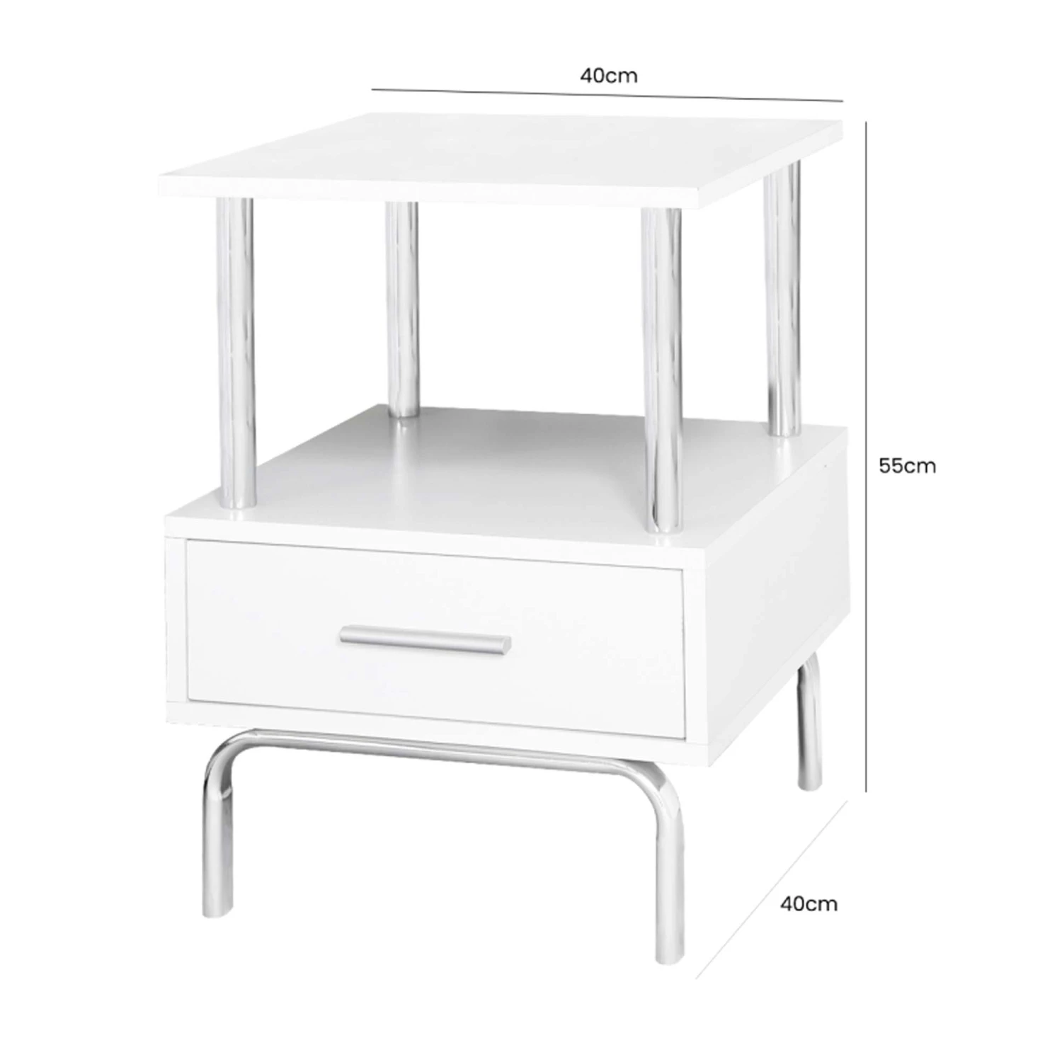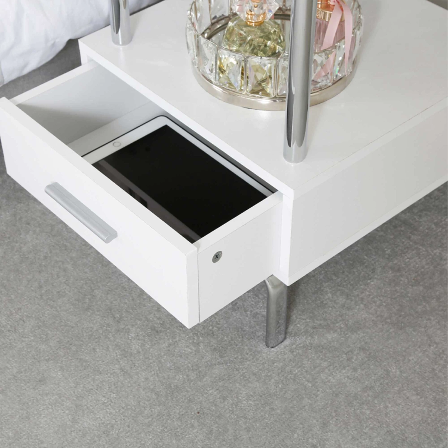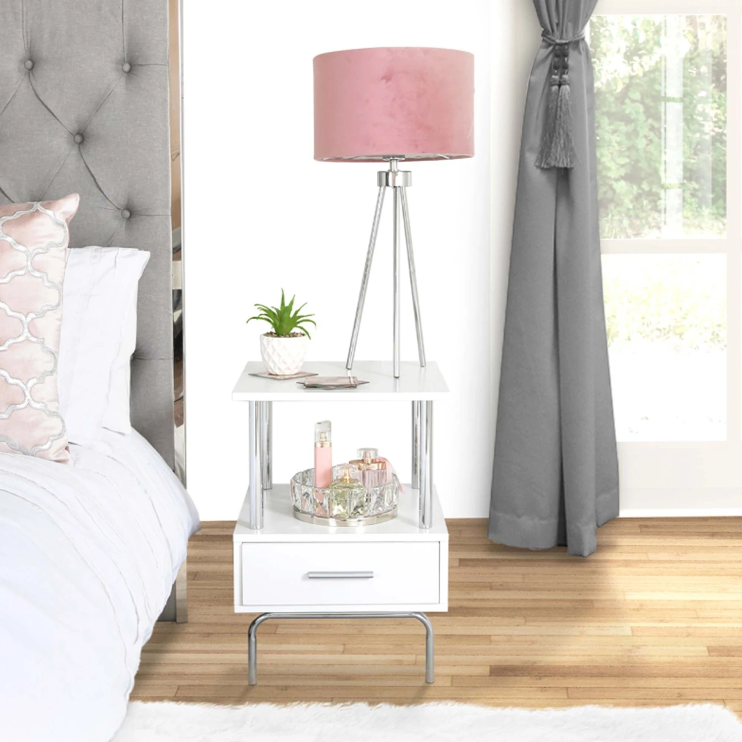 This Charlotte 1 Drawer Bedside is great for table lamps, books and ornaments. The contemporary design features 1 drawer for storing personal belongings and a shelf space for displaying your favourite possessions.Â