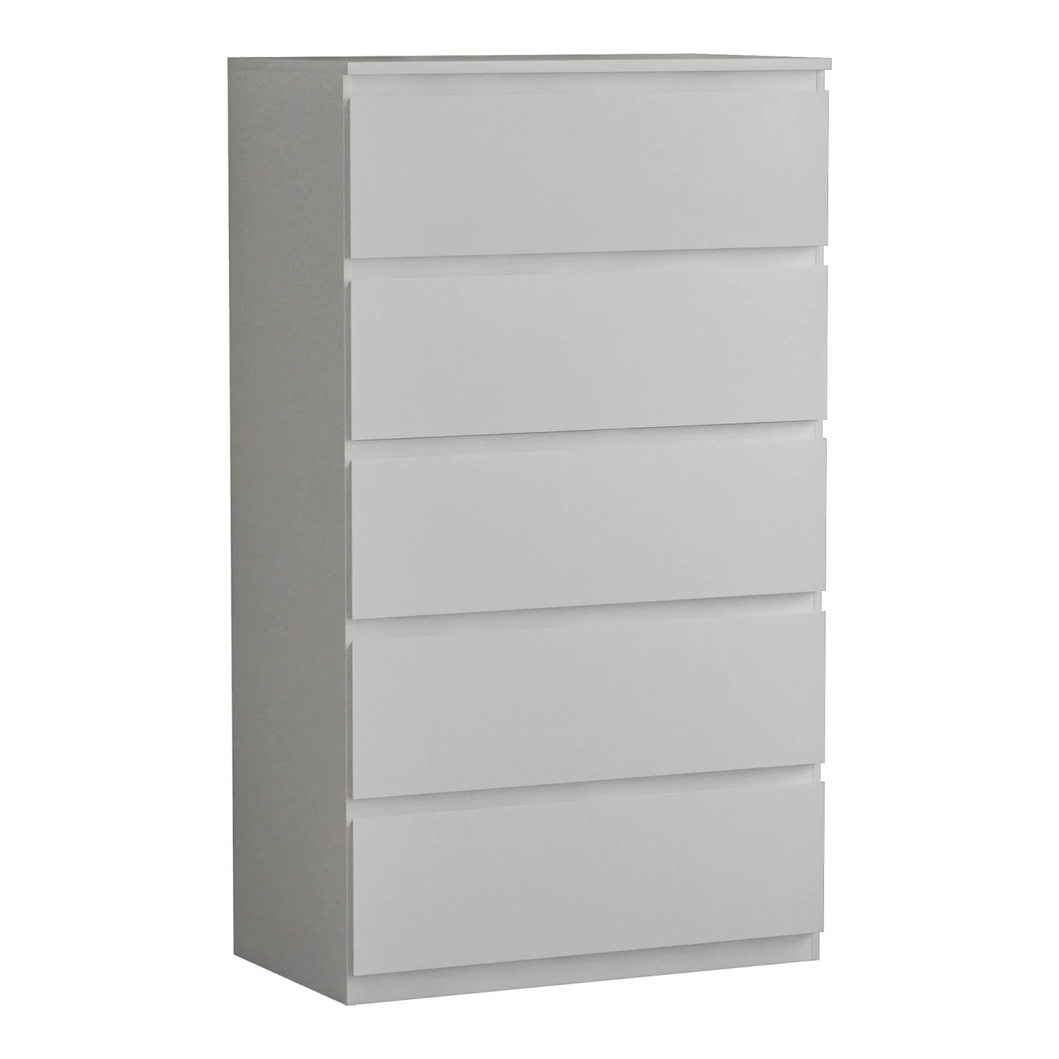 Practical as well as stylish, this Denver 5 Drawer White Chest has a lovely tall and narrow design, which makes it suitable for those who have the height but not the floor space. Compact in design, it has 5 drawers for storage and comes manufactured from solid wood with a sleek handle-less design. Painted in white to fit into most modern decor styles, it allows you to organise your clothes better for a clutter-free bedroom.