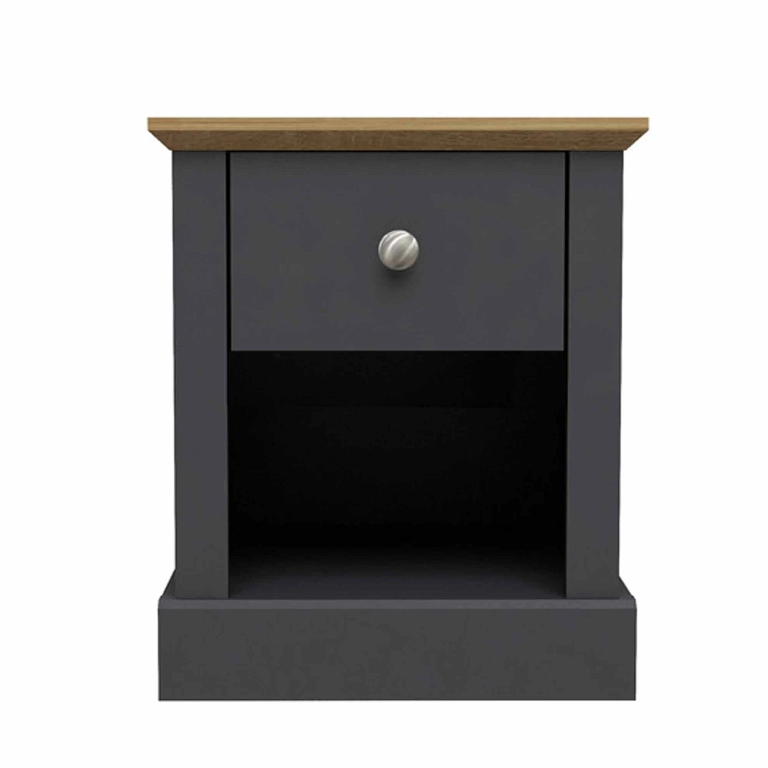 Light up the corner of any room with this Devon 1 Drawer Lamp Table Charcoal! Complete with 1 drawer for convenient storage, this lamp table is from the Devon furniture range and is finished in oak and charcoal for a contemporary look. This item can also be used as a bedside table.Â