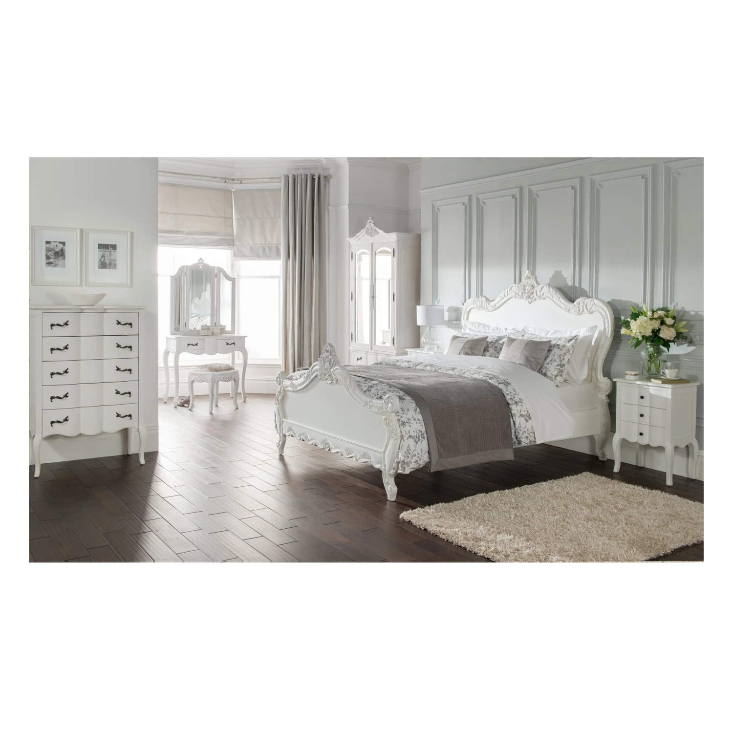 A brand new addition to our collection of antique French and shabby chic furniture comes the Estelle collection. Handcrafted and carefully built by experts, this delightful dressing table finished in a stunning antique white with a unique and stylish curved front is sure to impress across generations.