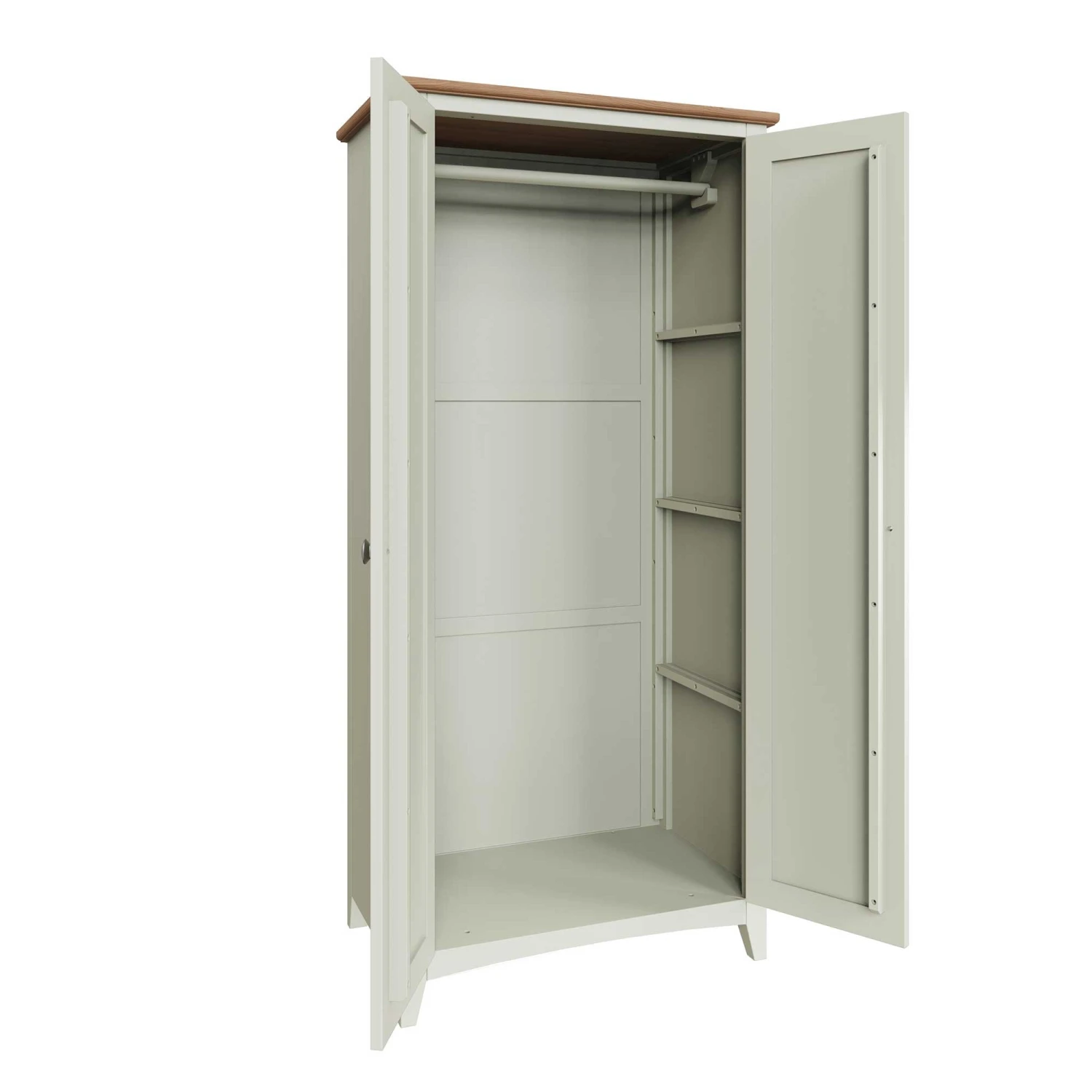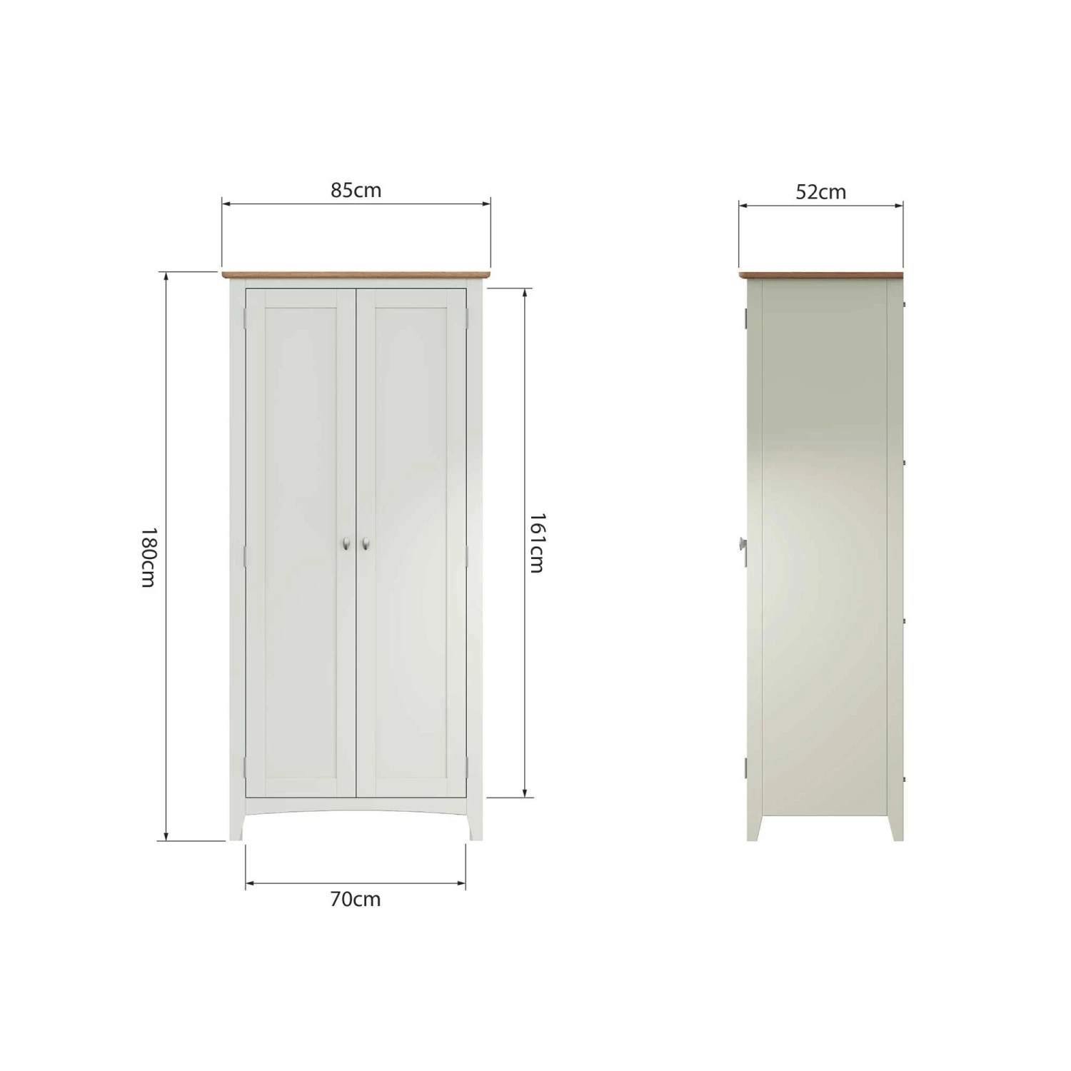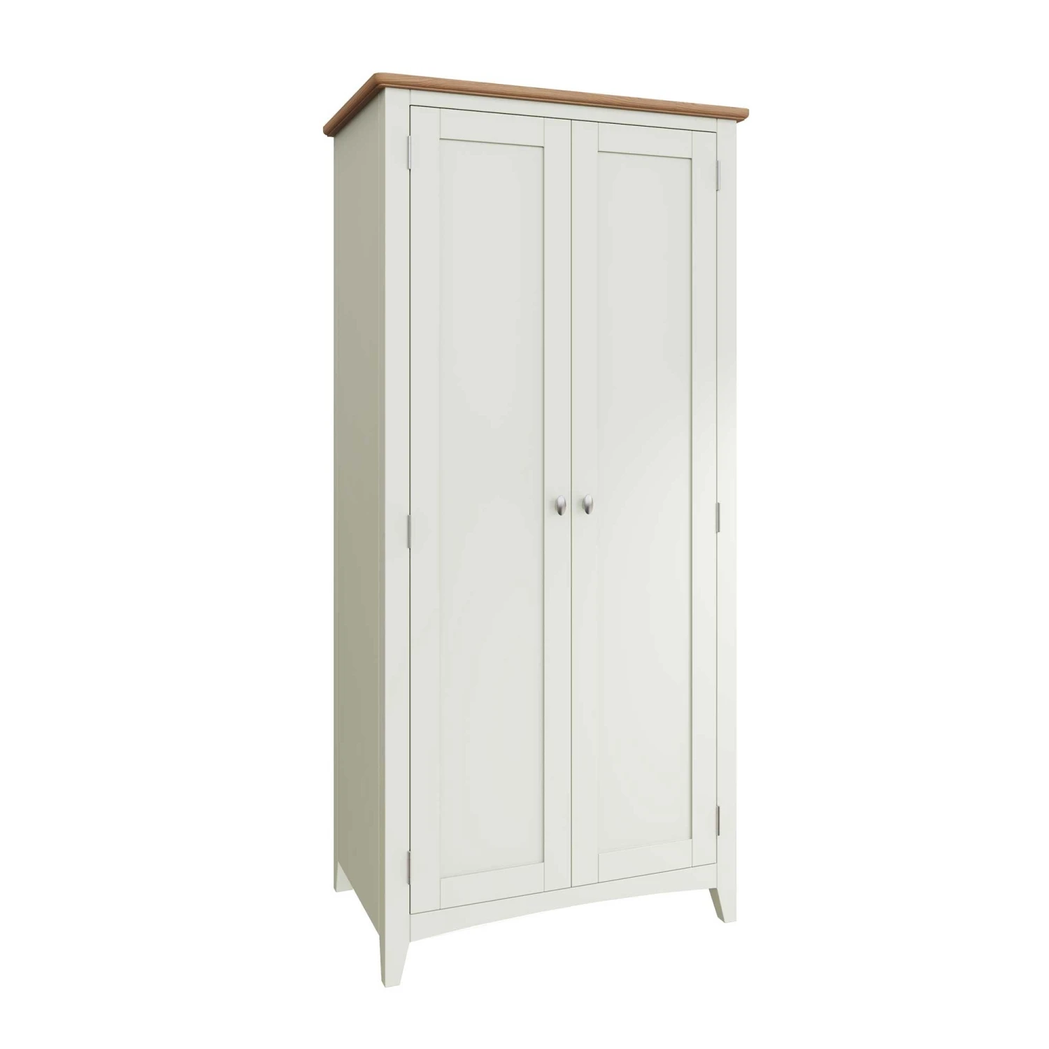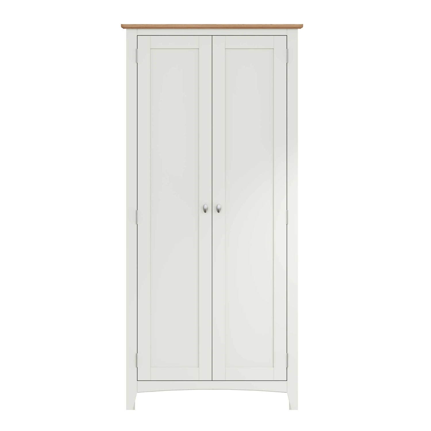 Hang all your long coats and jackets in this Granada White 2 Door Full Hanging Wardrobe! This full hanging wardrobe provides plenty of storage space and a large hanging area for your clothes collection! This 2 door wardrobe has a pure white painted finish and is complete with a light oak top and brushed metal handles. Matching items available.Â