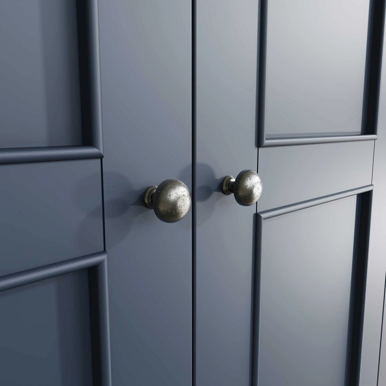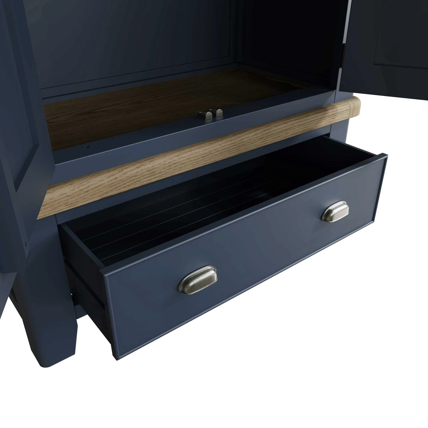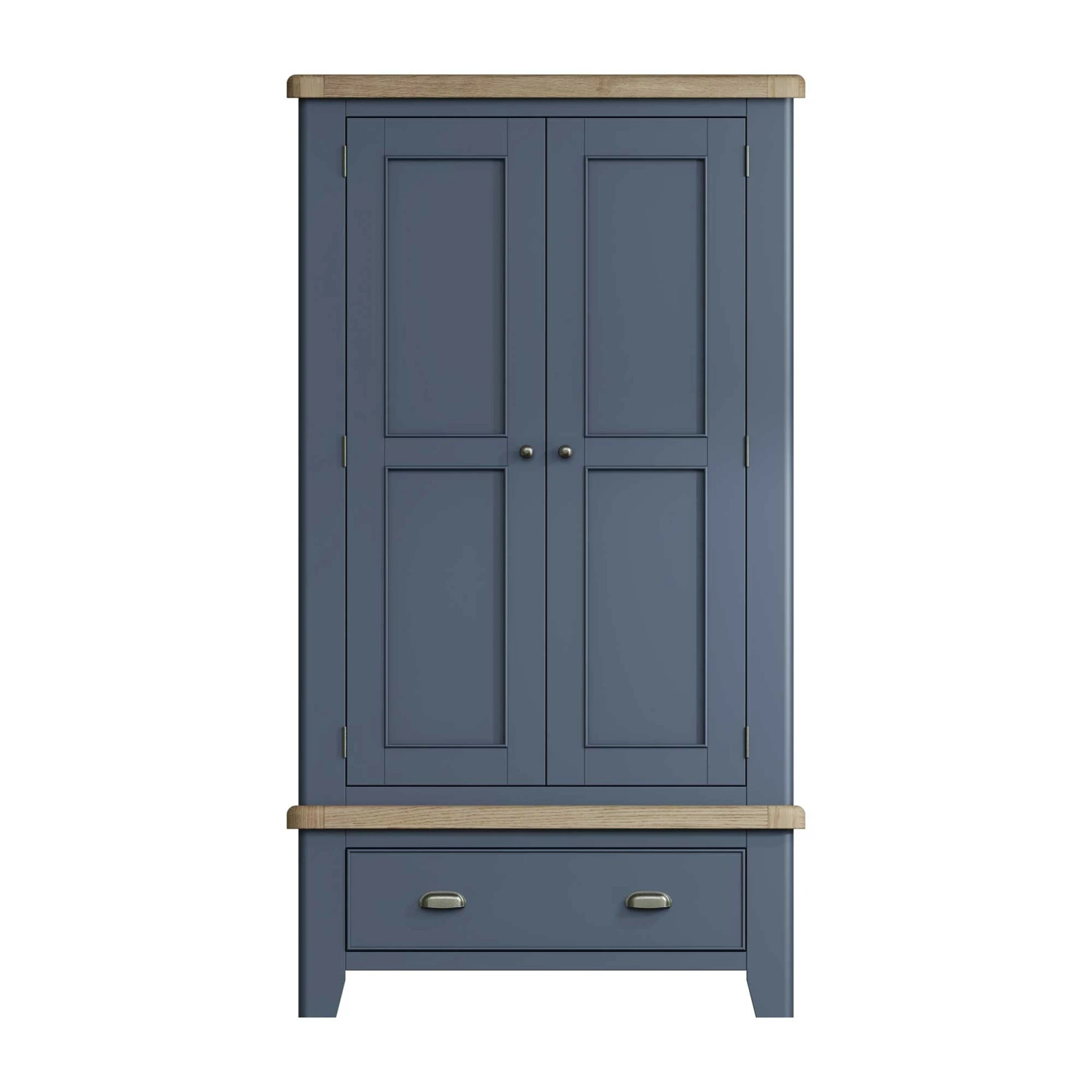 If you’re always running out of storage space then this Hopton Blue 2 Door Wardrobe is ideal for you! The 2 door wardrobe provides plenty of storage and a large hanging space is revealed behind the doors, perfect for your long winter coats! This 2 door wardrobe is painted in blue for a contemporary finish, and elegantly decorated with pewter door knobs and cup shaped handles for a classic touch. Matching items available.Â