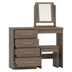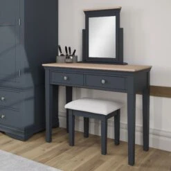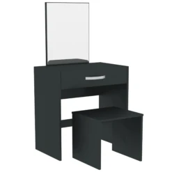 The Isla Black Dressing Table is produced using solid pine wood and finished in a bold black paint to create that statement piece for your bedroom. Featuring a pull-out drawer to store all your makeup, hair tools and accessories, it’s a practical piece of furniture that will come in handy. Featuring a simple, minimalistic design which will compliment your bedroom decor, this dressing table is sure to draw attention when you enter with its bold coloured exterior. Complete with matching stool, this Isla Dressing Table will be a staple piece for your room, enabling you to have your own area to get ready in. Available in other colours, it’s a traditionally designed dresser that is a popular choice amongst bedroom interiors.