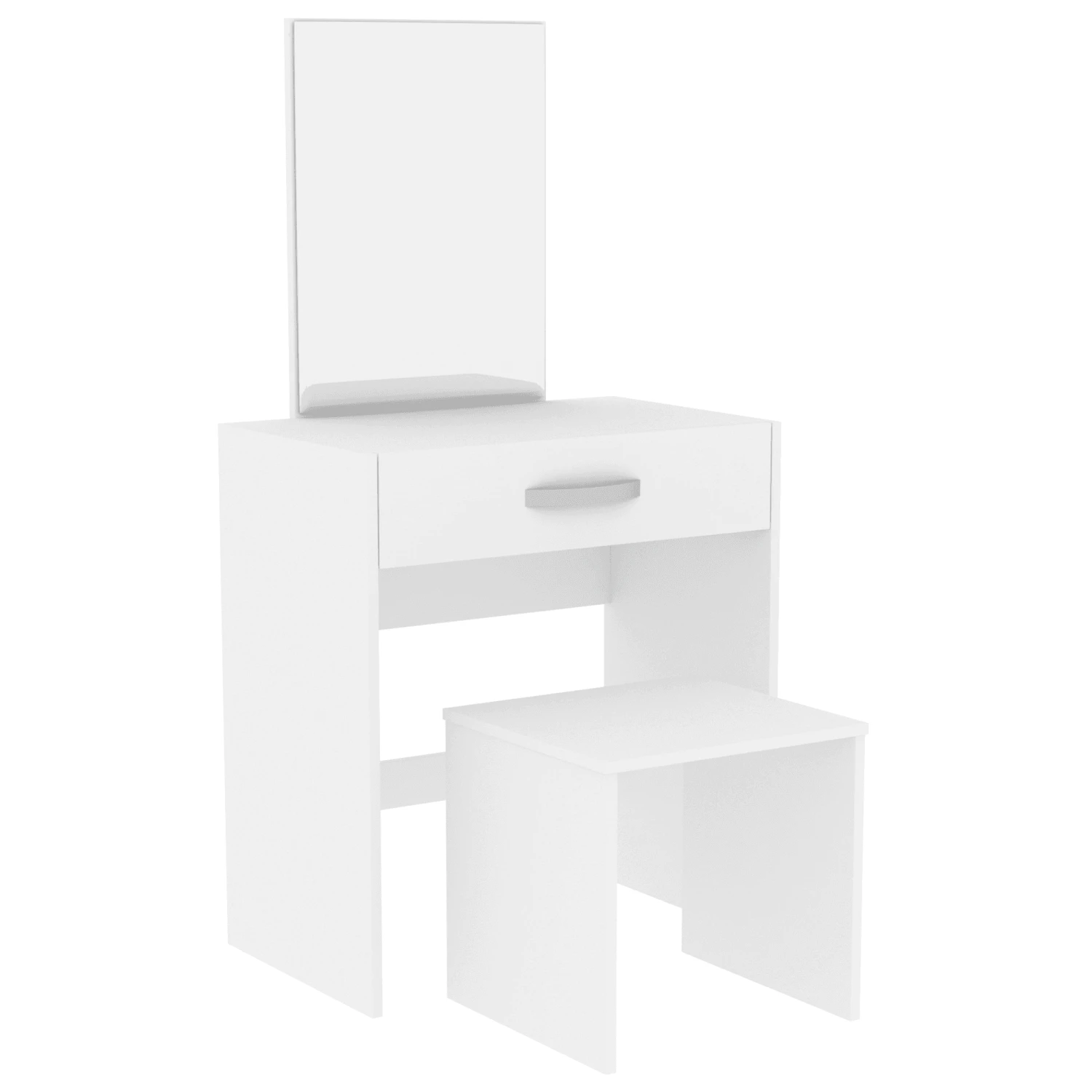 This Isla White Dressing Table is perfect to add to your bedroom furniture to create your own little beauty corner. With a fixed mirror and matching stool, it has everything you need to be able to doll yourself up and getting ready for a night on the town. Manufactured using high quality solid wood, it provides a strong and sturdy frame, ensuring a long-lasting build. With its practical storage, this Dressing Table provides a pull-out drawer that you can keep your makeup and hair tools in for that all important event you have coming up. Styled in a bright white, it will compliment your bedroom decor and brighten up the room. Also available in 3 other colours.
