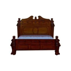 This antique French bed is a superbly ostentatious gothic bed. Festooned with hand carved detail, numerous lion’s heads and all manner of decoration. As all of our items, this bed is hand crafted using only the finest of materials to ensure you a quality well made product. Working well either on its own on complimented by our marvellous shabby chic furniture, you are sure to be impressed.