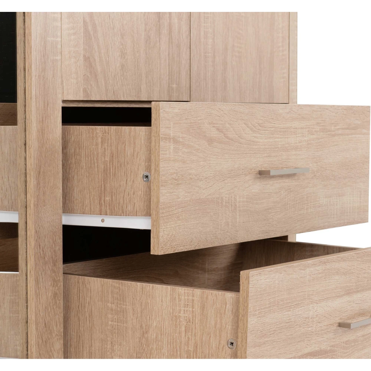 Incredibly stylish with mirrored fronts, this Lisbon Light Oak Effect 4 Door Wardrobe will make a wonderful addition to your bedroom, offering a mountain of storage space with 3 internal shelves, 2 drawers and 2 hanging rails. Its lovely light oak finish makes it suitable for any modern home, naturally blending to most furnishings. Complete with slim metal handles, you can use the mirrored fronts to choose your outfit each morning, making it practical and super versatile!