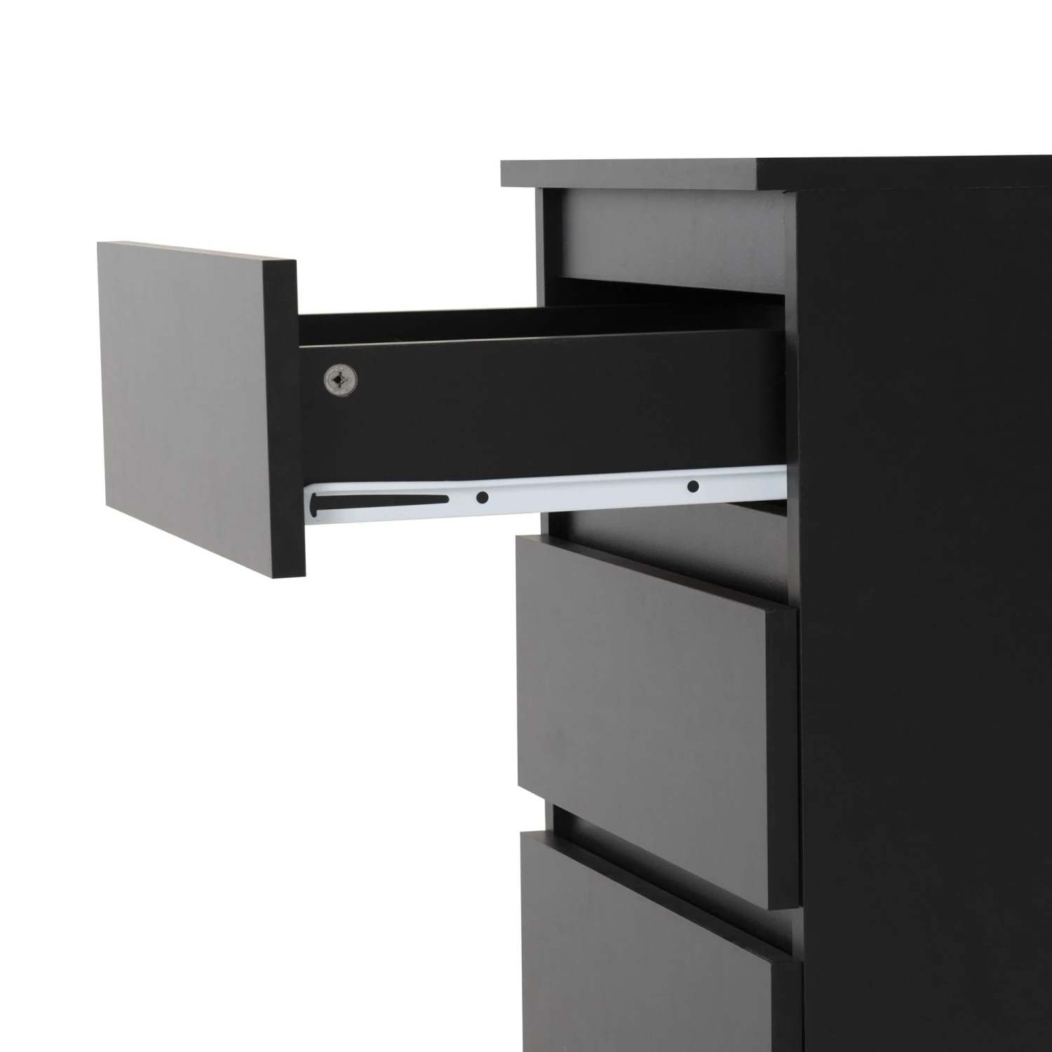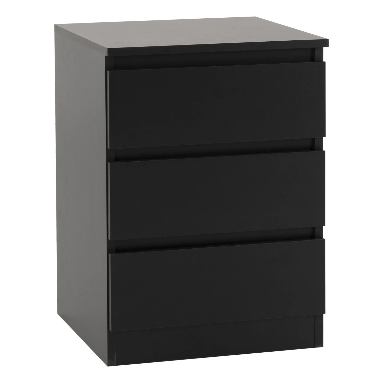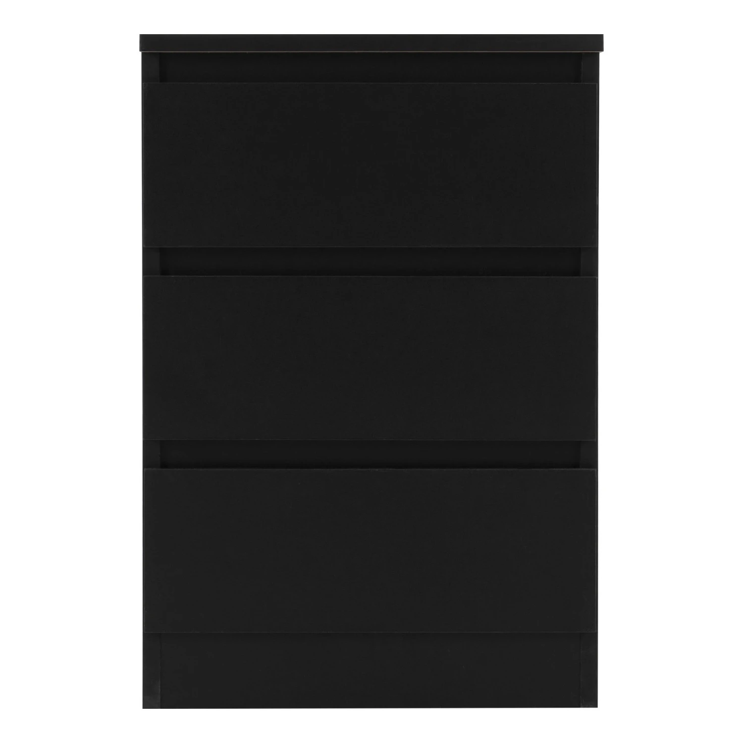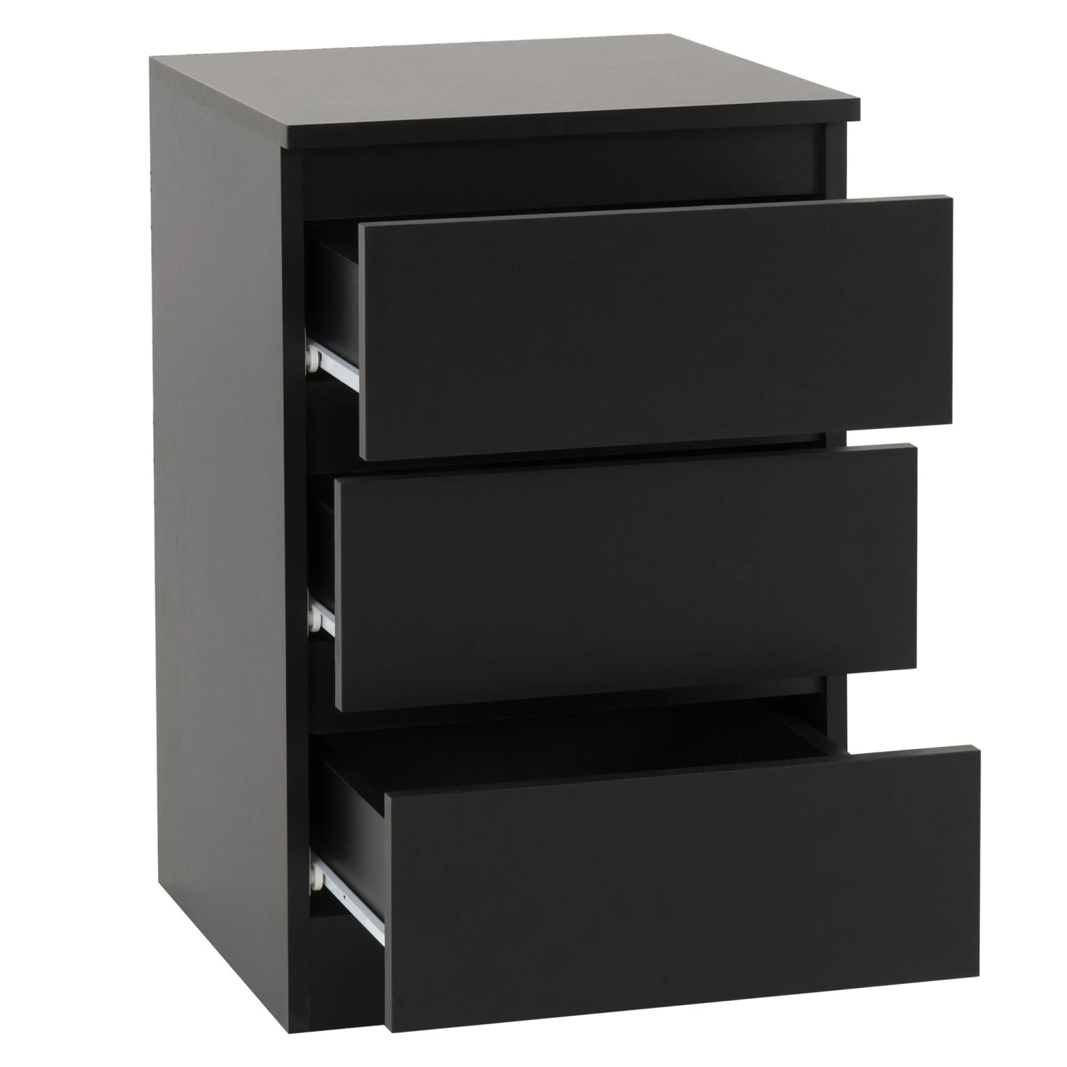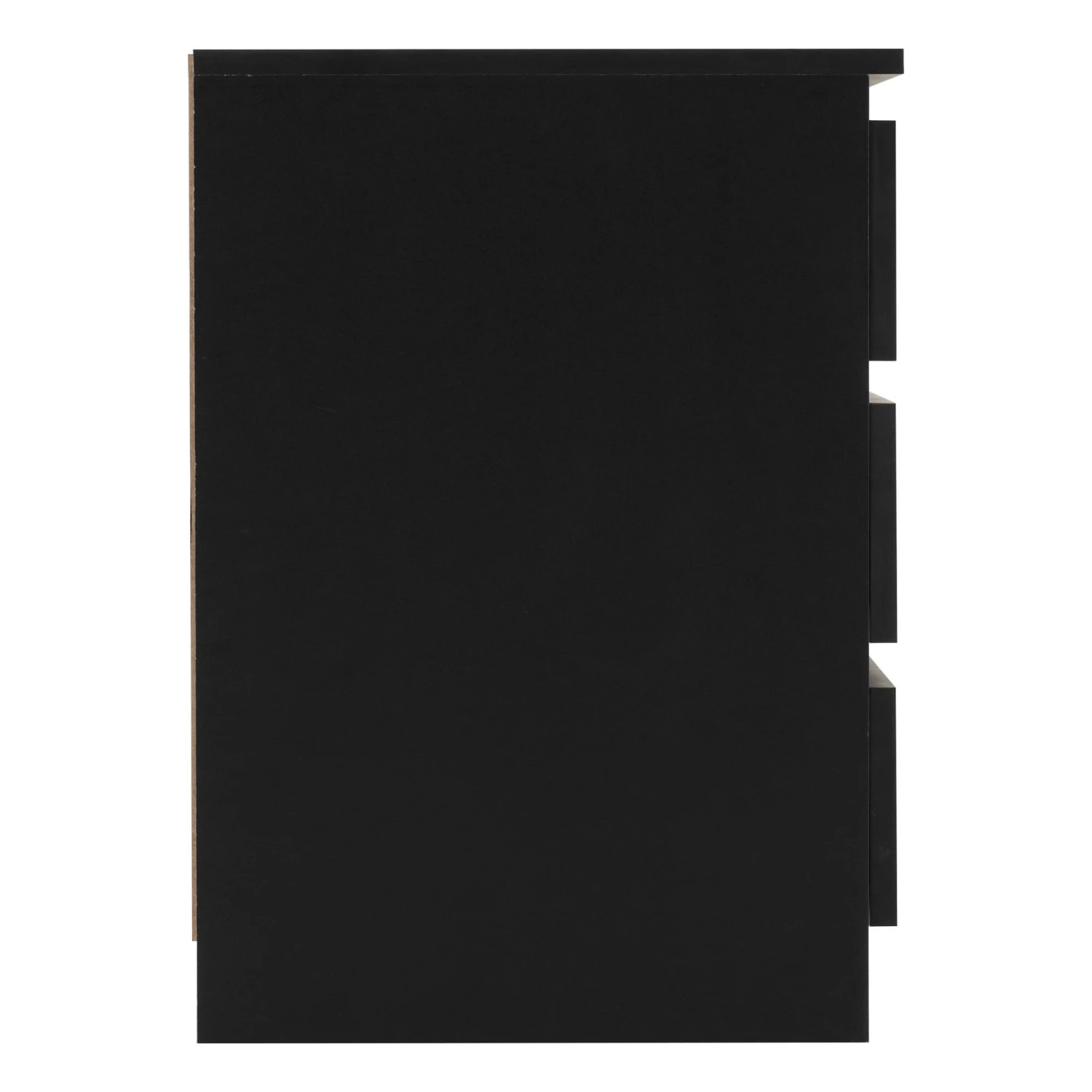 With a minimalistic modern styling, this Malvern Black 3 Drawer Bedside will instantly add a contemporary style to your bedroom decor. Coming in a bold black finish, it’s certain to stand out amongst other household furnishings, offering additional storage space where needed. With a 3 drawer design, it has come crafted from high quality materials to ensure a sturdy build and long-lasting design that you can hang on to for many years to come. With easy pull out drawers, you can store small bedtime essentials or sleep aids, which allows you to keep them close to hand.