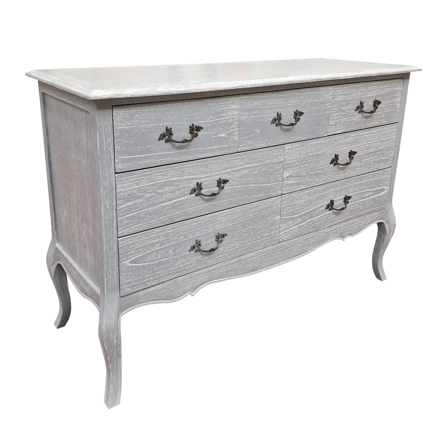 The Montpellier Blanc Grey 7 Drawer Chest from our latest collection is a great storage solution for bedrooms with limited space. Complete with 7 spacious drawers, this chest is made from solid Mindi wood with a neutral grey tone for a natural finish.