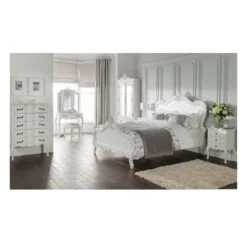 Get ready in style with this stunning Montpellier Blanc Grey Dressing Table! Made from solid Mindi wood with a grey tone finish, this dressing table offers style and practicality all at once! Complete with 4 drawers storage space and curved legs to enhance the French style look.Â
