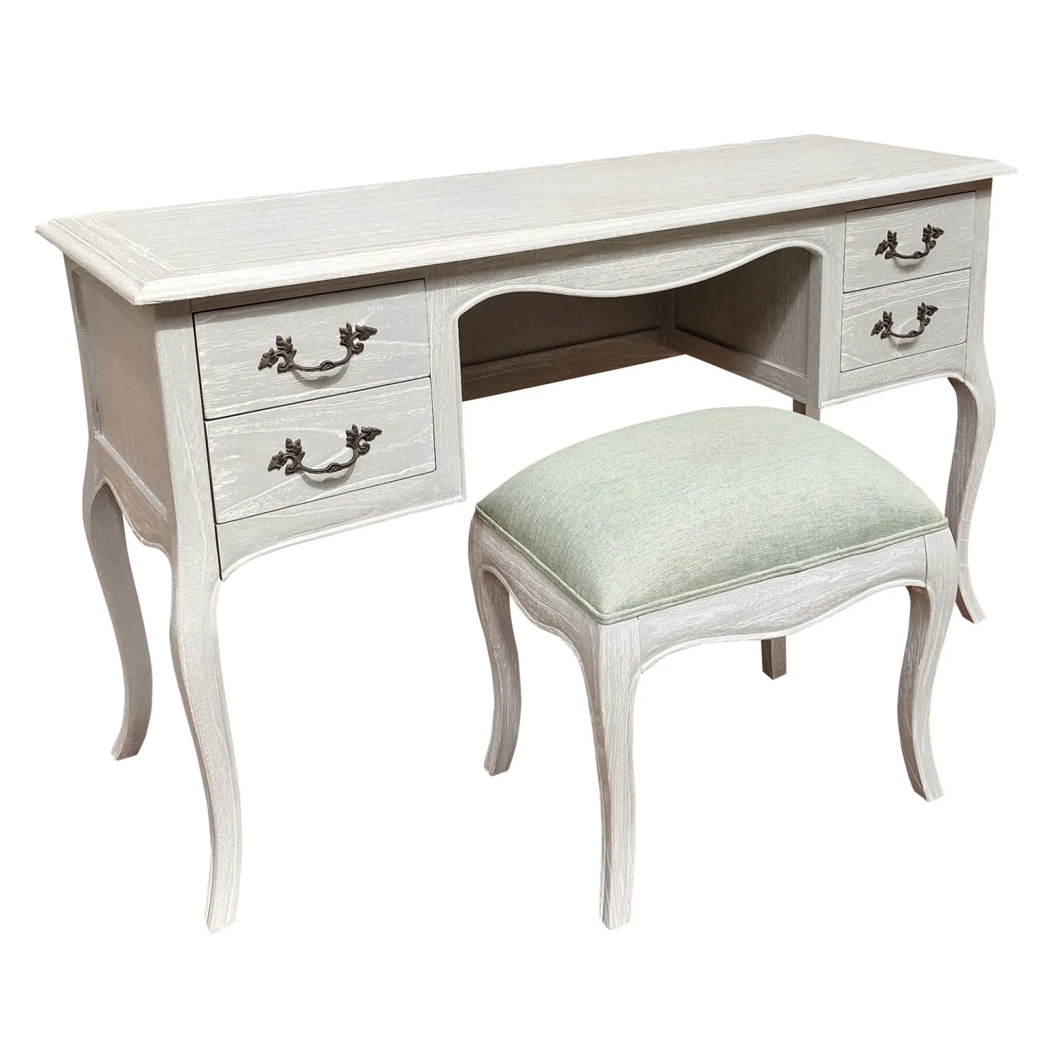 This Montpellier Blanc Sage Green Dressing Table will be a great addition in any bedroom, alongside the matching stool and mirror. Made from solid Mindi wood, this dressing table features a lovely sage green finish, complete with 4 drawers for convenient storage.