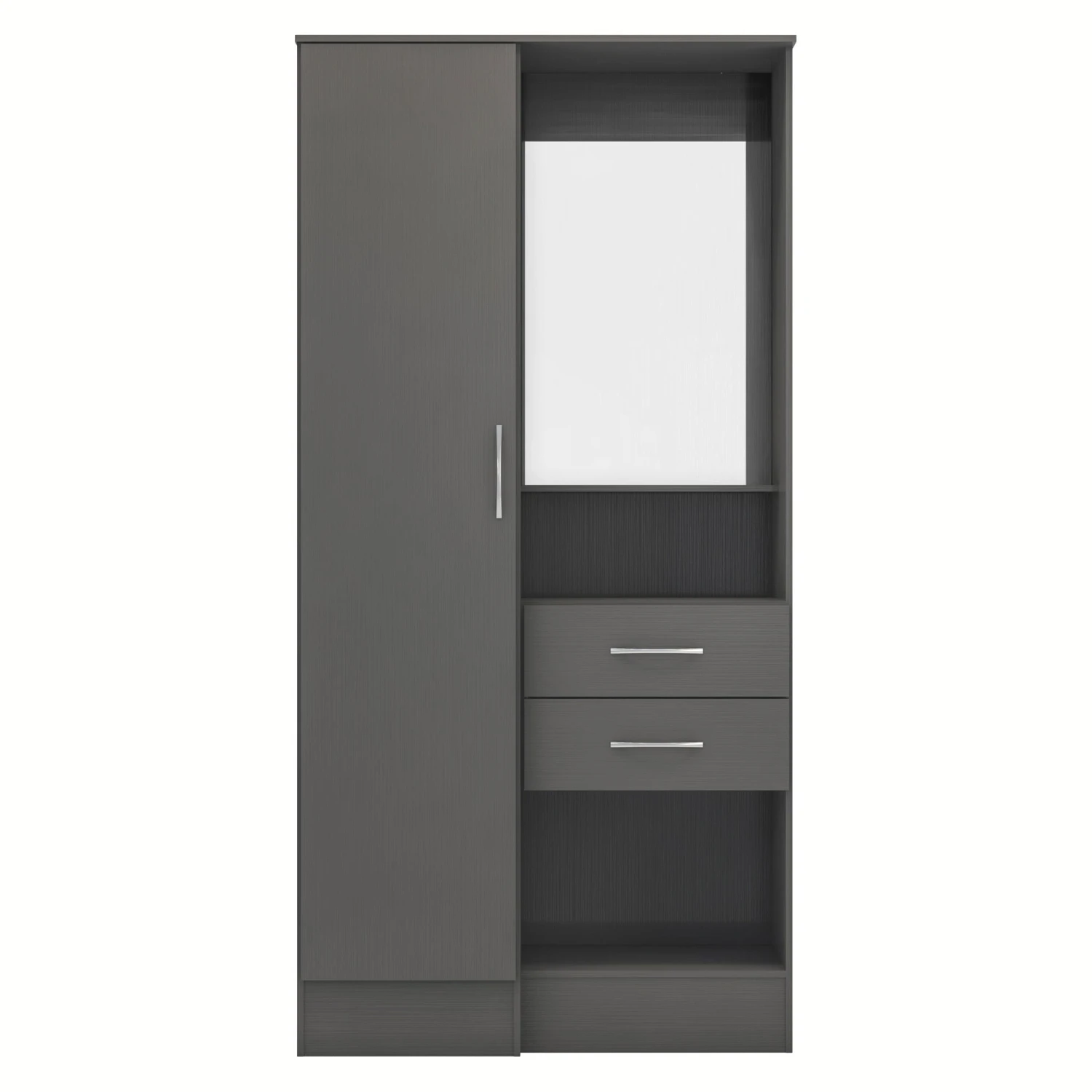 A stunning new addition to our range of bedroom furniture, the Nevada 3D Effect Grey Vanity 1 Door Wardrobe will add a contemporary, stylish new look to your bedroom. With a 1 door design featuring a mirrored door front, it doubles up as a vanity unit with 2 drawers for storage, shelf space and a mirror insert. Manufactured to be hard-wearing, it makes for a practical and durable piece of bedroom furniture that you won’t want to miss out on!