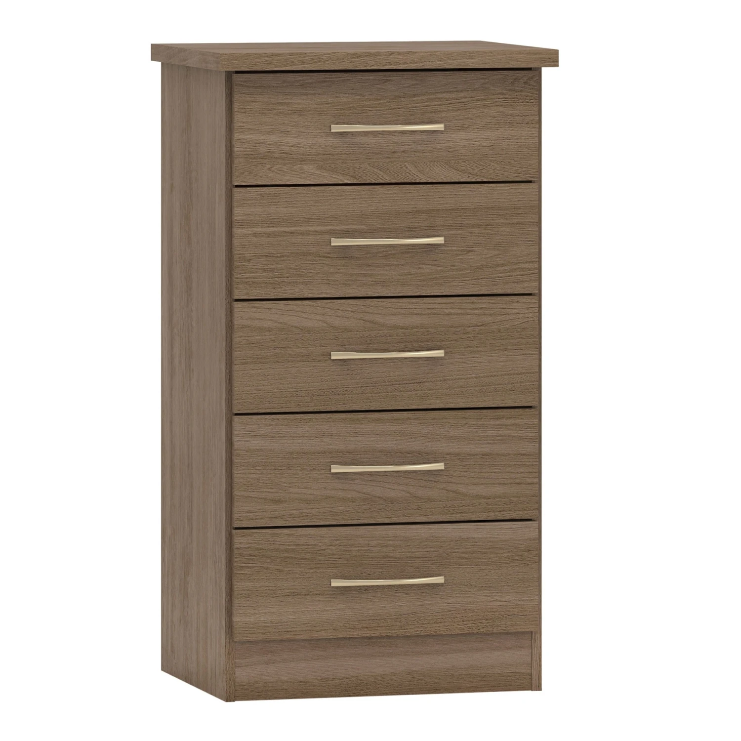 The perfect storage solution for those with limited space, check out the Nevada 5 Drawer Rustic Oak Effect Narrow Chest with a super modern design that is sleek and compact. With a narrow build, it’s been manufactured using composite board and plastic veneer with a rustic oak finish that comes complete with slim metal handles for easy pull out access. Coming with 5 drawers, you will have lots of additional storage space for bedding, towels, clothes and much more!