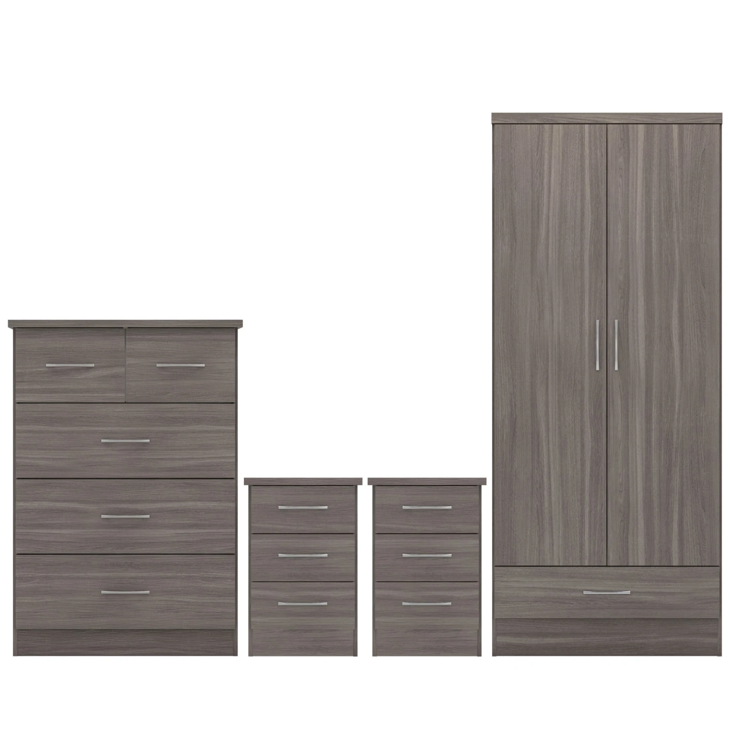 Get your hands on this Nevada Black 2 Door 1 Drawer Wardrobe Bedroom Set and upgrade your bedroom furniture in one full swoop. Crafted to be long-lasting and highly durable from only the best quality materials, it comes in a black wood grain finish. With a wardrobe, chest of drawers and 2 bedside tables, it will complete the set-up of your room in record time at an affordable price! What more could you ask for?Â