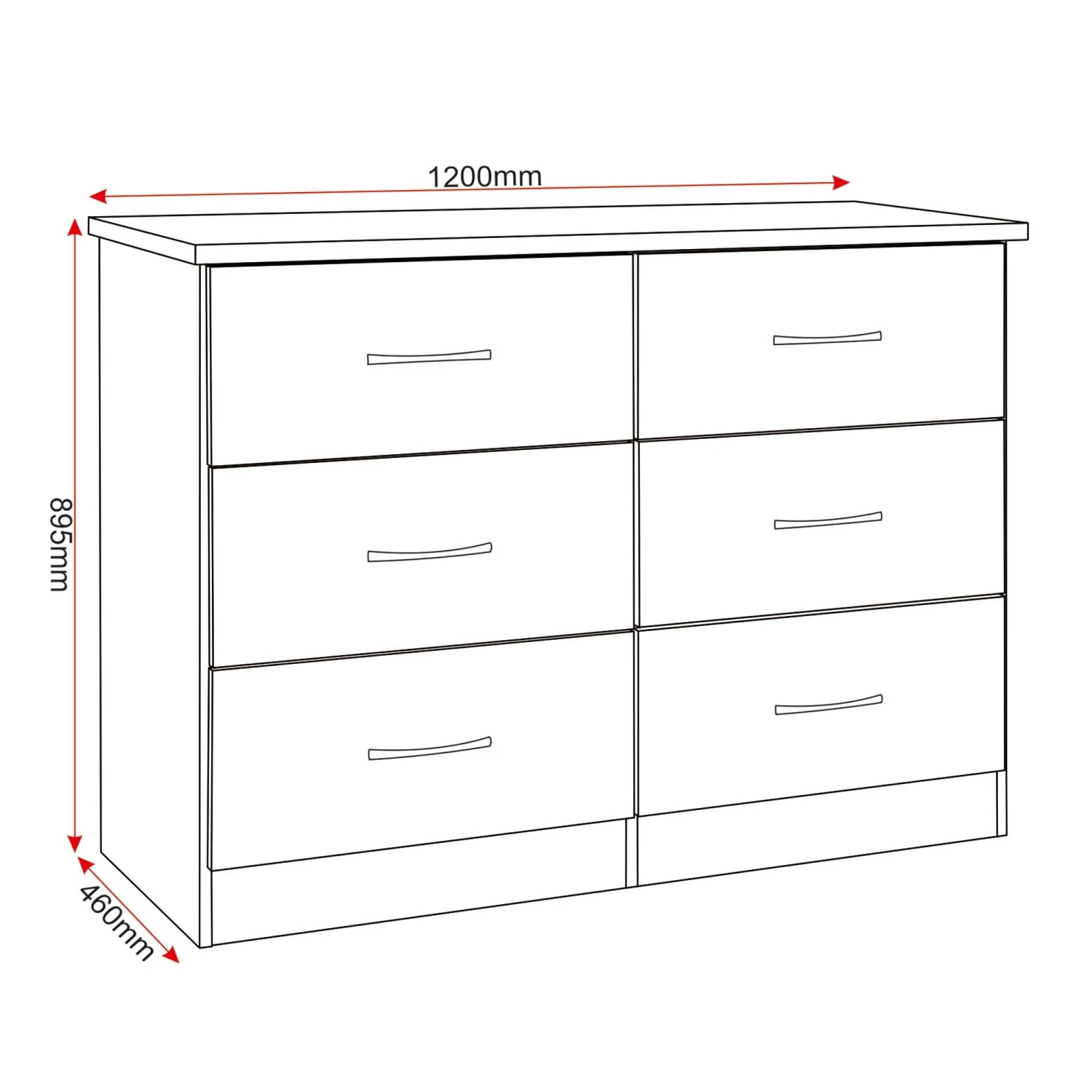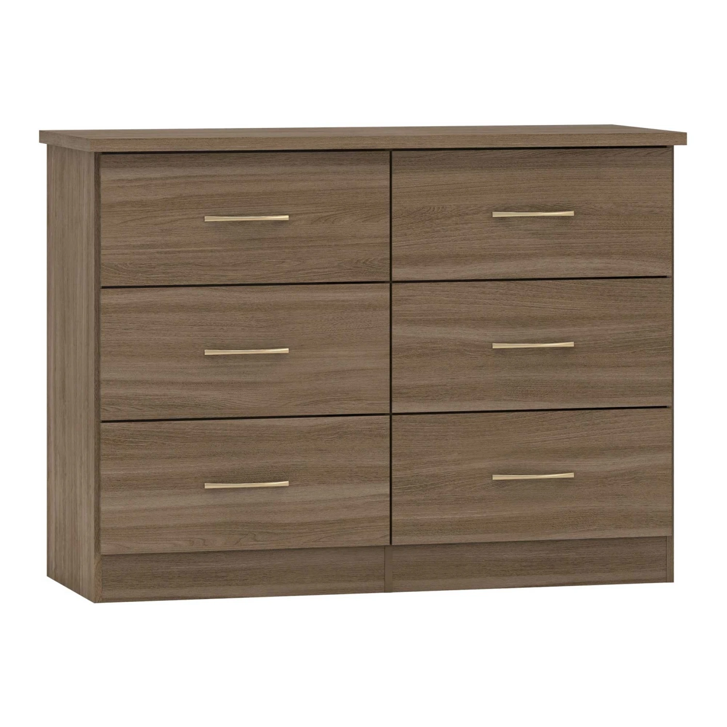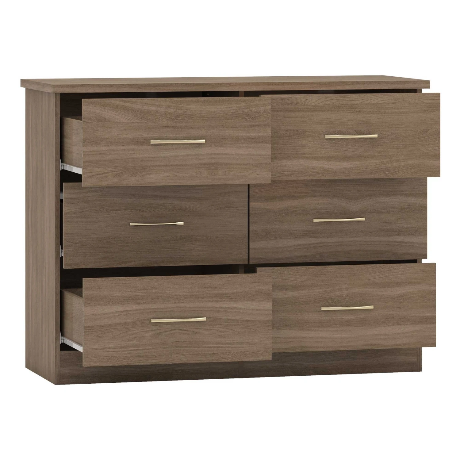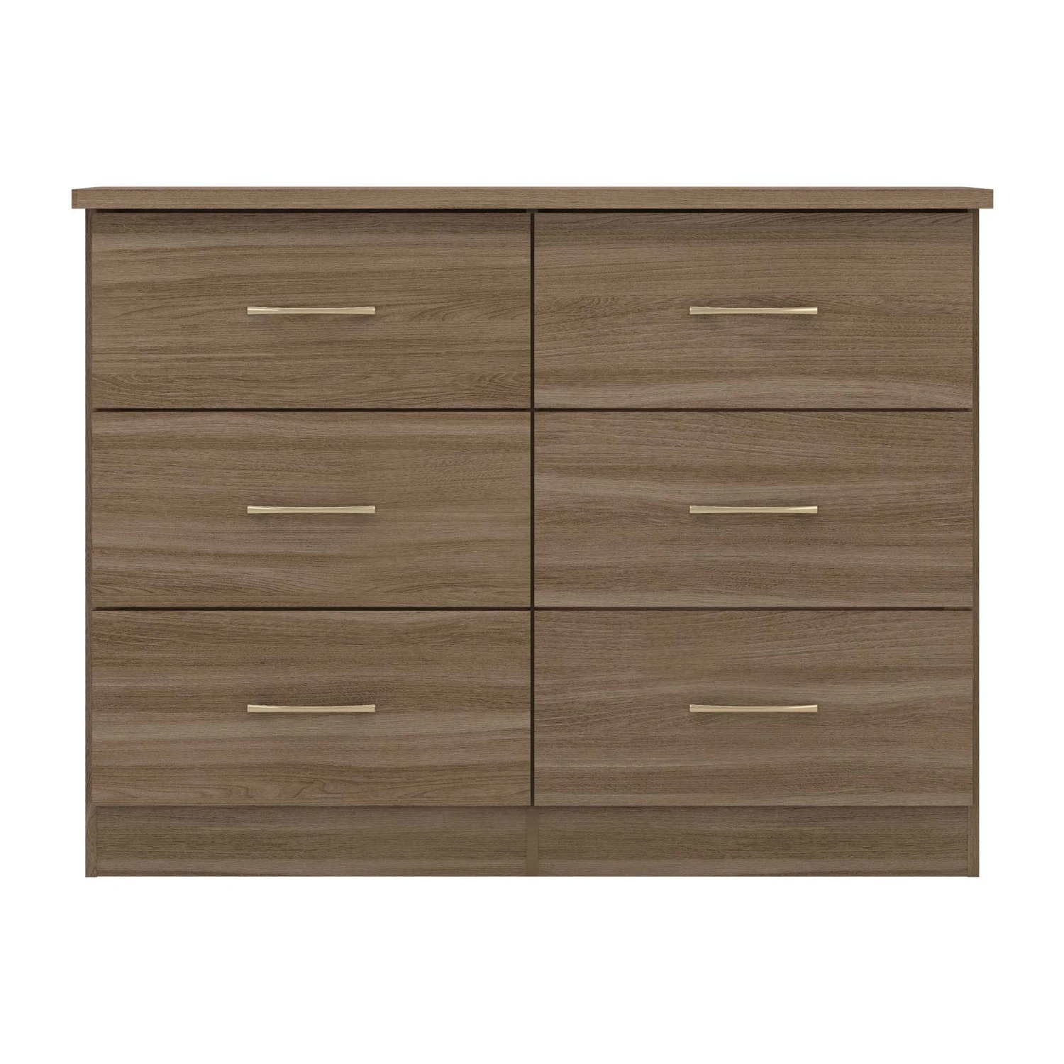 Wanting more from your bedroom furniture? Discover this Nevada Rustic Oak 6 Drawer Chest, giving you plenty of storage space for all your essentials. Coming in a beautiful rustic oak finish, it’s a modern designed storage chest that will ensure you never run low again! With 6 drawers in total complimented with long thin metal handles and on metal runners for easy glide open access, it will be a welcome addition to match your existing bedroom furniture.Â