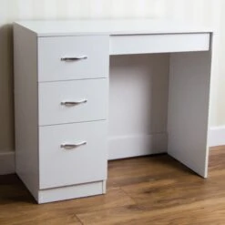 Complete with a white finish, the 3 drawer dressing table has been designed for the practical purpose which enables this table to bring extra functionality to your bedroom area whilst offering the interior space a design that is going to benefit the surrounding furniture and the style that you seek for your home.Â