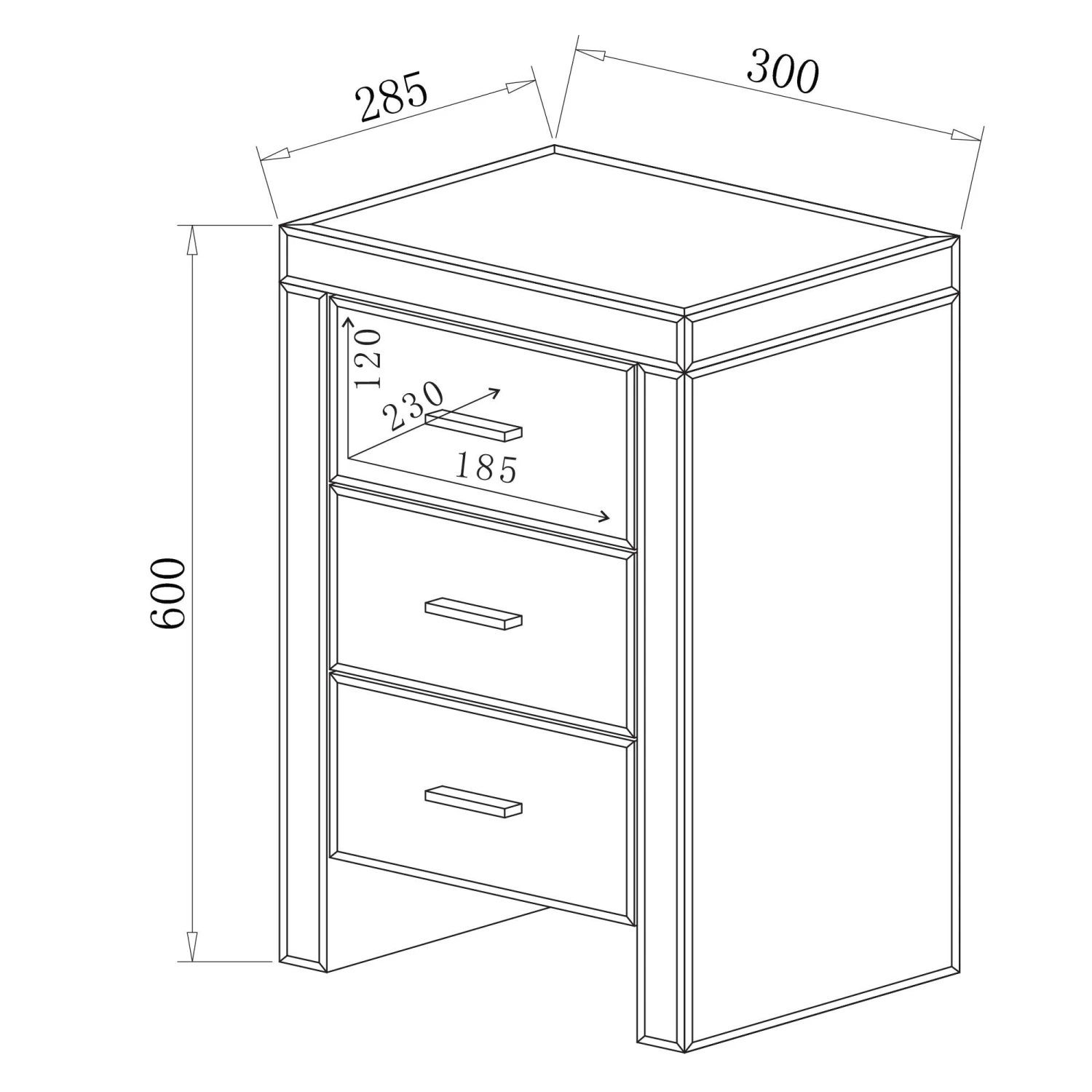 A breath-taking addition to our collection of Venetian mirrored furniture. This slim Romano mirrored bedside has been carefully built using a combination of mirror glass and wooden frames. It has been inspired by the Italian Venetian period, the versatile design of this range will sit comfortably in a modern or traditional setting making this mirrored slim bedside a wonderful addition in your home, perfect to give the appearance of a bigger brighter room.