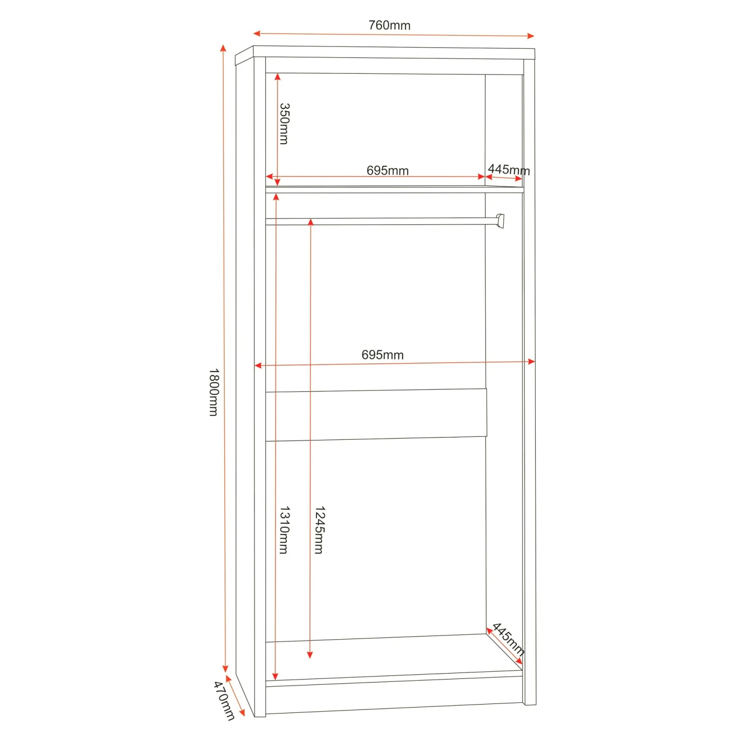 - Wardrobe – Width 76cm, Depth 47cm, Height 180cm