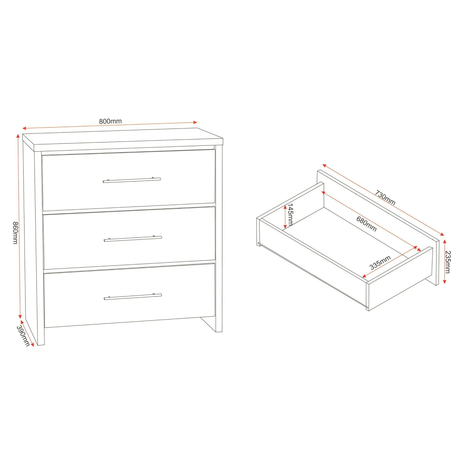The Seville Bedroom Set in Black High Gloss/Light Oak Effect Veneer is a great way to keep tidy and stay organised with all your personal belongings! With enough room for all your clothes, bedding and bath towels, this set from the Seville Family come with metal handles and drawer runners for easy access. Available in grey and white.