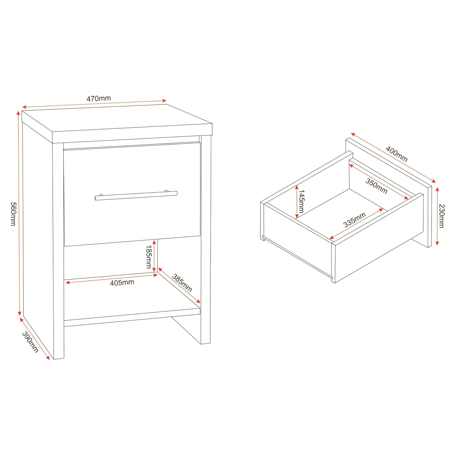 - Bedside – Width 47cm, Depth 39cm, Height 56cm