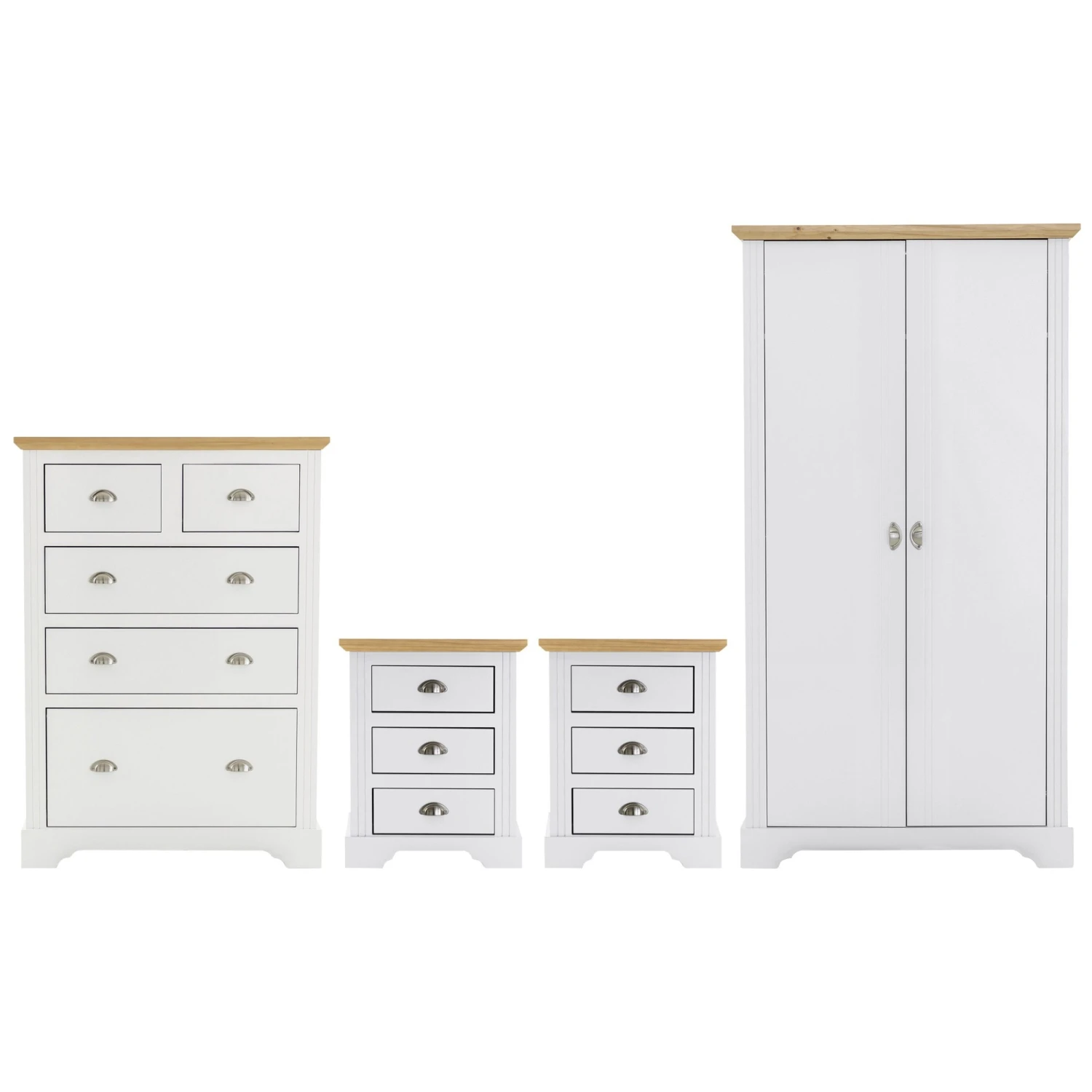The Toledo 2 Door Wardrobe Bedroom Set is sure to spruce up the bedroom with a linear way of decorating it, having everything matching in a calming white. Includes 2 bedside tables with 3 spacious drawers, a chest and large wardrobe.