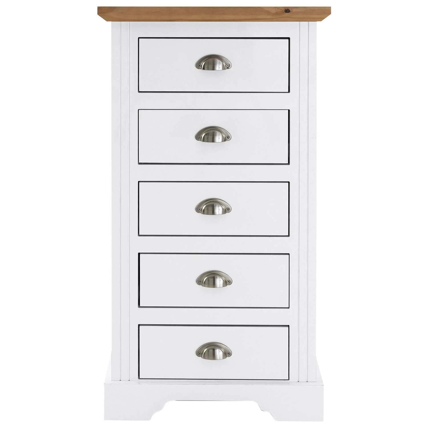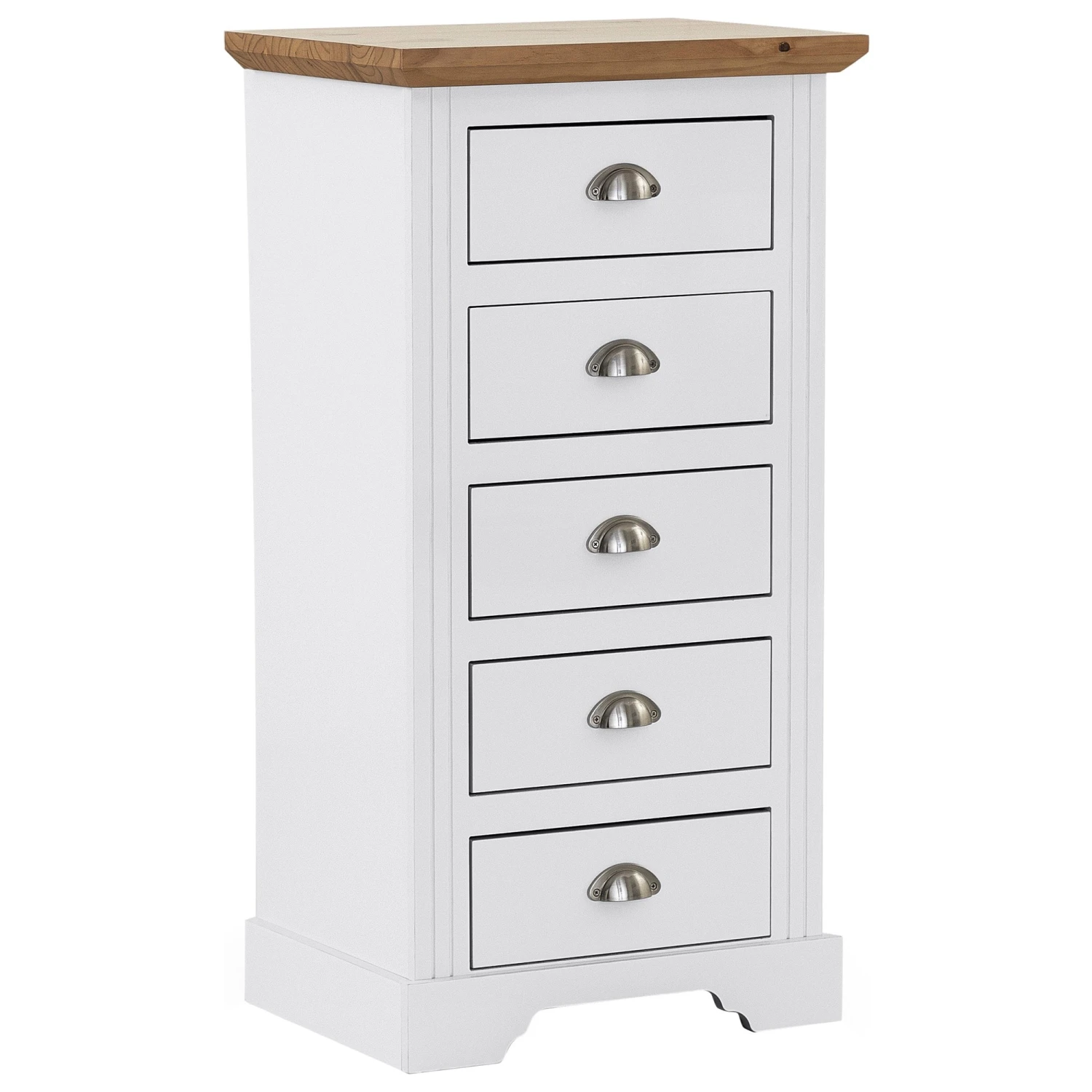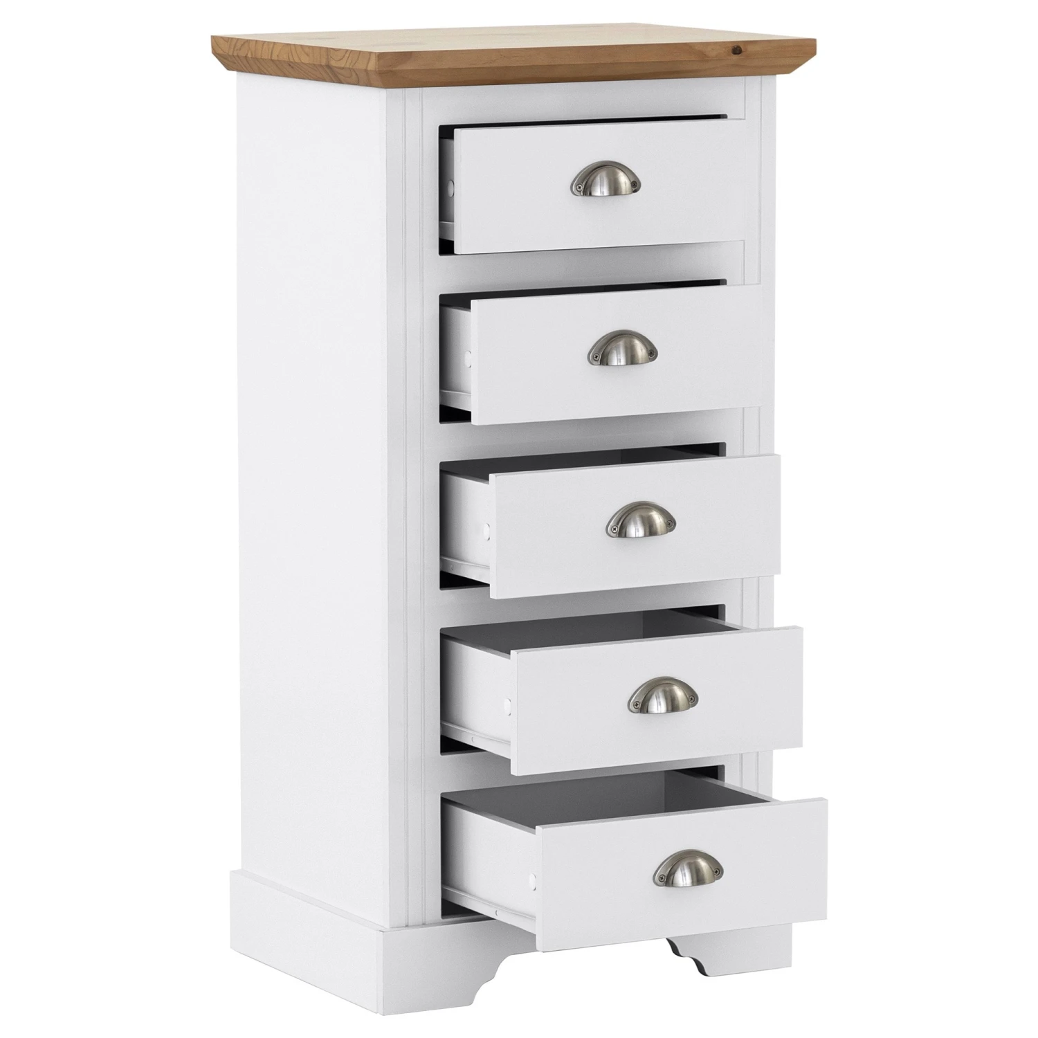 The beautifully designed Toledo 5 Drawer Narrow Chest will brighten up any bedroom due to its white finish with a modern oak effect. With 5 spacious drawers this allows you to add more storage to the bedroom in a stylish way.