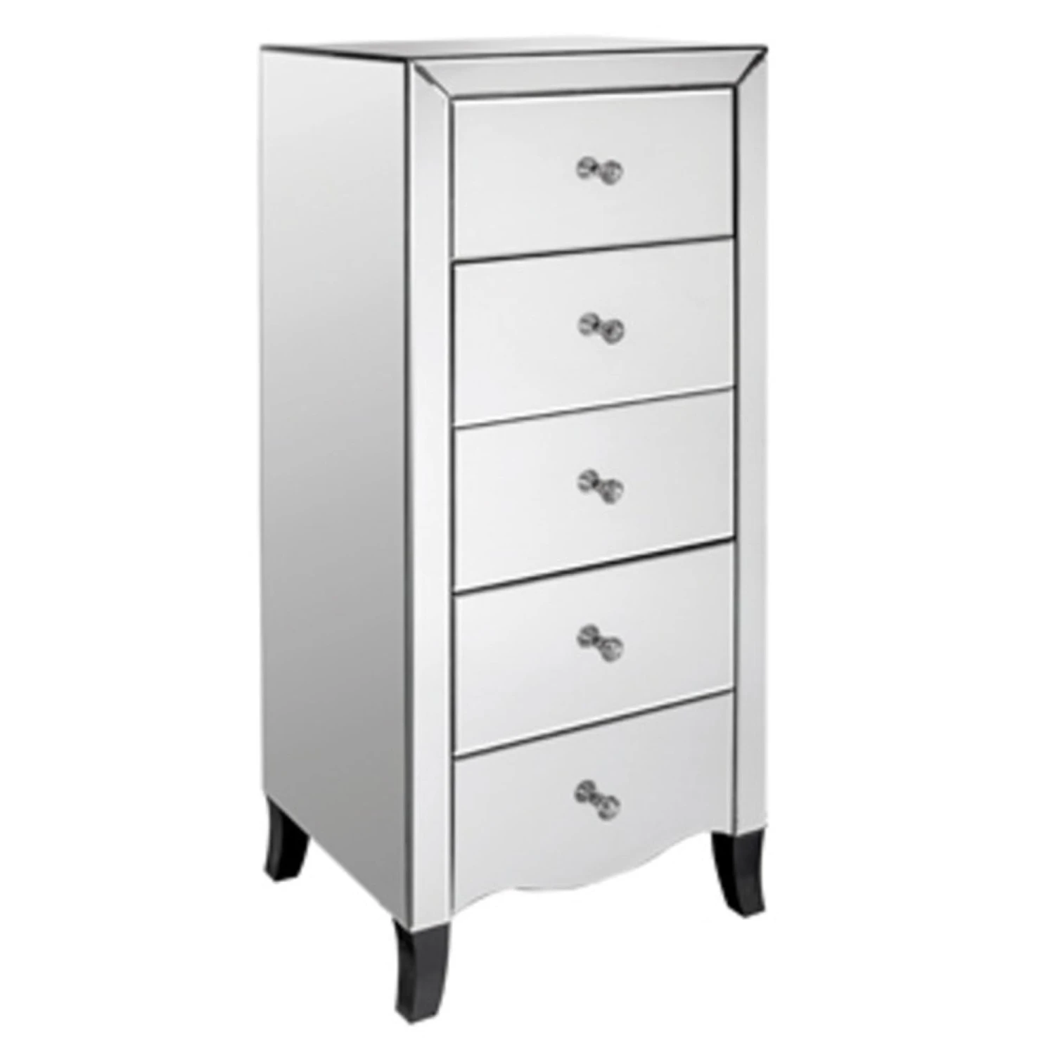 This stunning mirrored chest of drawers would be the most perfect and practical new addition to your home, bringing an elegant style and a sleek touch to your interior whilst providing plenty of storage space. This chest of drawers has a fully mirrored exterior and provides plenty of storage with its five large drawers that are finished with crystal handles.