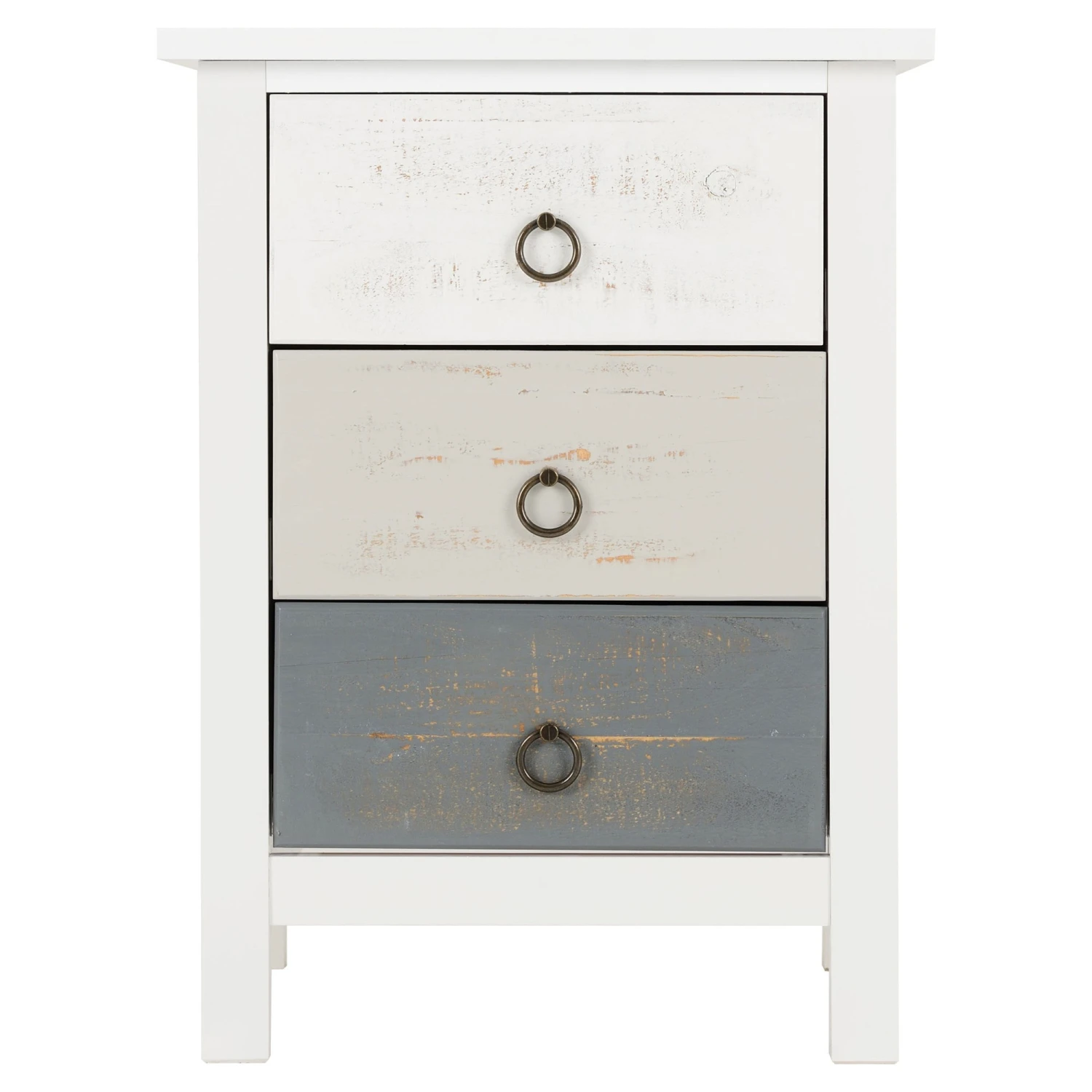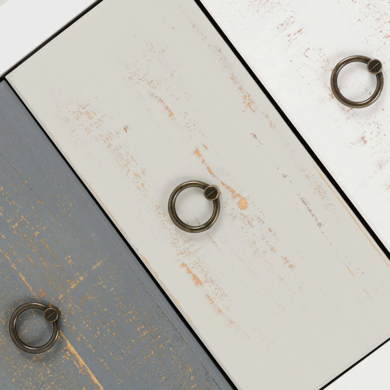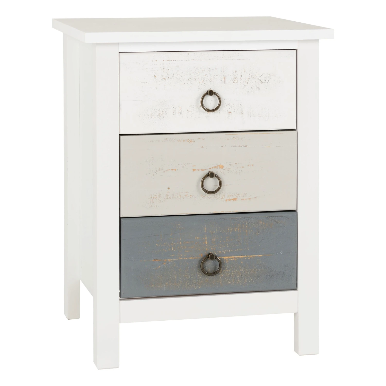 Create the bedroom you’ve always wanted when you discover our Vermont White & Grey 3 Drawer Bedside. The perfect way to give additional storage space as well as adding style to your room. Buy in a pair to add on either side of your bed making that statement finish or just add into a corner with a table lamp placed on top. With a rustic white and grey distressed finish, it’s super modern and is complete with small ring handles, manufactured from an MDF and composite board mix.Â
